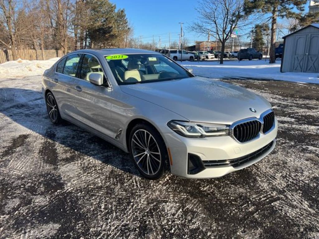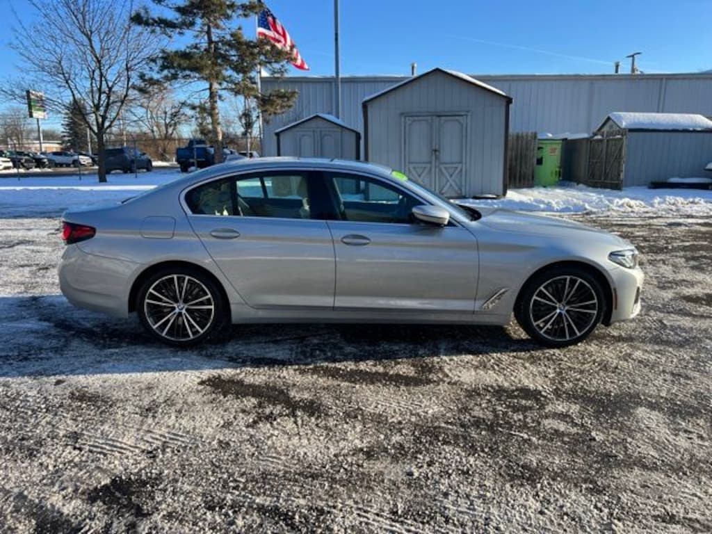 New Price! A true beauty! Great miles and excellent condition! Certified. We are Michigan's #1 Certified Pre-Owned Dealer!, 3 month 3,000 mile Powertrain Warranty $0 deductible, 3 month / 3000 mile bumper to bumper warranty with no deductible, Accident Free Carfax History Report, Leather*, Local Trade**, 540i, 4D Sedan, 3.0L I6 Turbocharged DOHC 24V LEV3-ULEV70, 8-Speed Automatic Sport, RWD, Glacier Silver Metallic, Ivory White w/Dakota Leather Upholstery, 12 Speakers, Active Park Distance Control, Air Conditioning, Alloy wheels, AM/FM radio: SiriusXM with 360L, Apple CarPlay & Android Auto Compatibility, Auto High-beam Headlights, Auto tilt-away steering wheel, Auto-dimming door mirrors, Auto-dimming Rear-View mirror, Automatic temperature control, BMW Assist eCall, BMW TeleServices, Brake assist, Bumpers: body-color, Connected Package Pro, ConnectedDrive Services, Delay-off headlights, Drive Recorder, Driver door bin, Driver vanity mirror, Electronic Stability Control, Enhanced USB & Bluetooth, Enhanced USB & Bluetooth (ZEB), Exterior Parking Camera Rear, Four wheel independent suspension, Front dual zone A/C, Front reading lights, Fully automatic headlights, Garage door transmitter, Genuine wood console insert, Genuine wood dashboard insert, Genuine wood door panel insert, Gesture Control, harman/kardon Surround Sound System, Head-Up Display, Heated door mirrors, Heated Front Seats, Hi-Fi Sound System, Illuminated entry, Leather Shift Knob, Leather steering wheel, Live Cockpit Pro w/Navi, Lumbar Support, Memory seat, Navigation System, Outside temperature display, Panic alarm, Parking Assistance Package, Parking Assistant Plus, Passenger vanity mirror, Perforated Sensatec Upholstery, Power door mirrors, Power driver seat, Power Front Seats, Power moonroof, Power passenger seat, Power steering, Power Tailgate, Power windows, Premium Package, Radio data system, Radio: AM/FM Audio System, Rear reading lights, Rear seat center armrest, Rear window defroster, Rear-View Camera, Remote Engine Start, Remote keyless entry, Security system, SiriusXM w/360L, Speed-sensing steering, Split folding rear seat, Sport Seats, Sport steering wheel, Steering wheel memory, Steering wheel mounted audio controls, Surround View w/3D View, Tachometer, Telescoping steering wheel, Tilt steering wheel, Traction control, Trip computer, Turn signal indicator mirrors, WiFi Hotspot, Wireless Charging. Clean CARFAX.