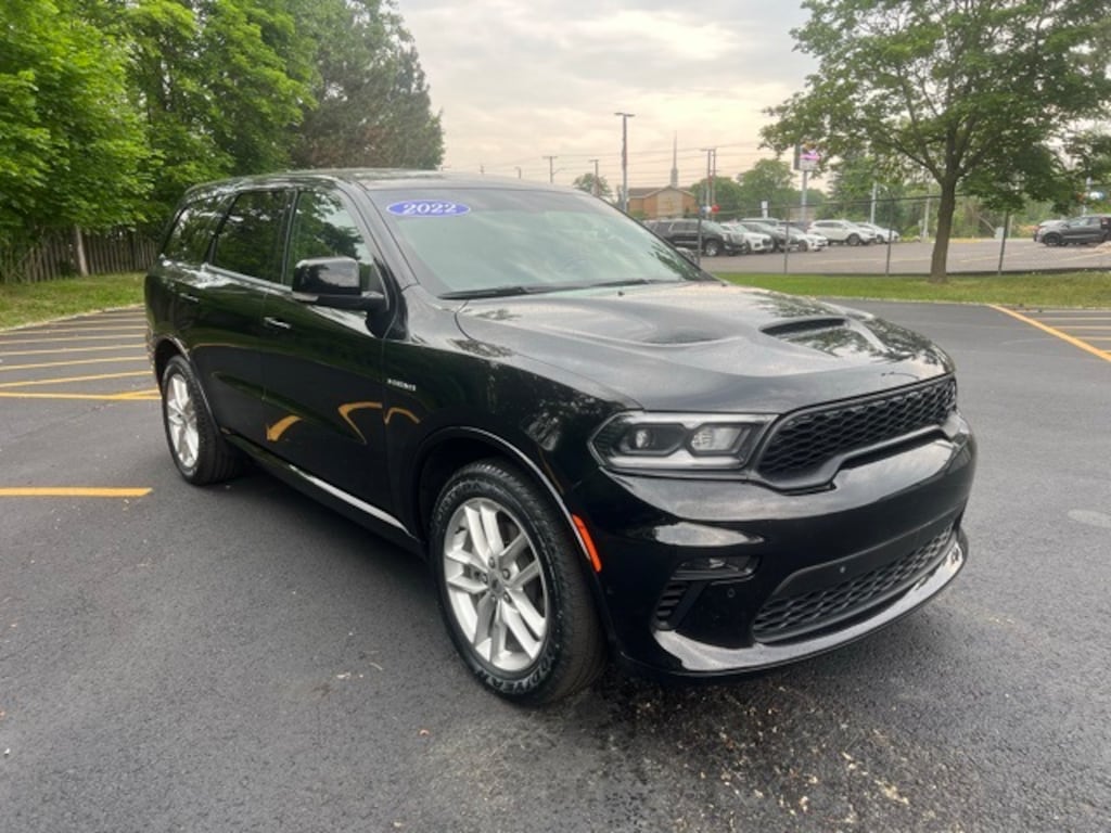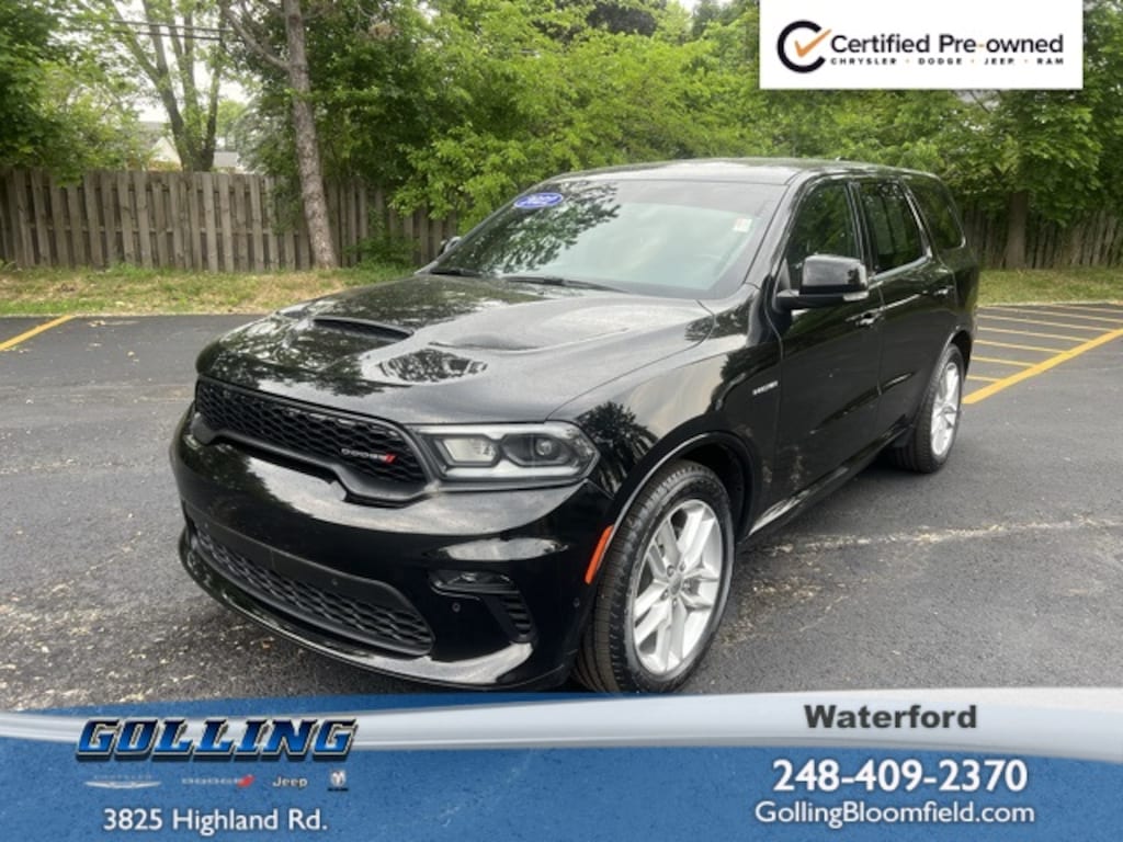 Certified. We are Michigan's #1 Certified Pre-Owned Dealer!, 3 month 3,000 mile Powertrain Warranty $0 deductible, 3 month / 3000 mile bumper to bumper warranty with no deductible, 7-year/100,000-mile warranty!, Heated Seats**, Carfax One Owner!!, Local Trade**, USB Charging Ports, Steering Wheel Controls, Backup Camera, Bluetooth, Remote Start, Apple CarPlay, Blind Spot Monitors, Keyless Access w/ Push Button Start, Smartphone App Integration, Voice Recognition, Durango R/T, 4D Sport Utility, HEMI 5.7L V8 Multi Displacement VVT, 8-Speed Automatic, DB Black Crystal Clearcoat, Black Leather, Wiring Harness 7 & 4 Pin, 2nd Row Fold/Tumble Captain Chairs, 2nd Row Mini Console w/Cupholders, 2nd Row Seat Mounted Inboard Armrests, 6-Passenger Seating, 9 Speakers, Air Conditioning, Alloy wheels, Apple CarPlay/Android Auto, Audio memory, Auto High-beam Headlights, Auto-dimming Rear-View mirror, Auto-leveling suspension, Automatic temperature control, Brake assist, Class IV Receiver Hitch, Compass, Delay-off headlights, Driver door bin, Driver vanity mirror, Four wheel independent suspension, Front Center Armrest w/Storage, Front dual zone A/C, Front fog lights, Front reading lights, Fully automatic headlights, Garage door transmitter, Heated front seats, Heated rear seats, Heated steering wheel, Heavy-Duty Engine Cooling, Illuminated entry, Memory seat, Mini Console 3rd Row Floor Mat, Outside temperature display, Overhead console, ParkView Rear Back-Up Camera, Passenger door bin, Passenger vanity mirror, Power driver seat, Power Liftgate, Power passenger seat, Power Sunroof, Power windows, Quick Order Package 22S R/T, Radio data system, Radio: Uconnect 5 Nav w/10.1" Display, Rain sensing wipers, Rear air conditioning, Rear Load Leveling Suspension, Rear reading lights, Rear seat center armrest, Rear window defroster, Rear window wiper, Remote keyless entry, Speed-sensing steering, Speed-Sensitive Wipers, Split folding rear seat, Steering wheel mounted audio controls, Tachometer, Telescoping steering wheel, Tilt steering wheel, Traction control, Trailer Brake Control, Trailer Tow Group IV, Trip computer, Variably intermittent wipers, Voltmeter. CARFAX One-Owner.