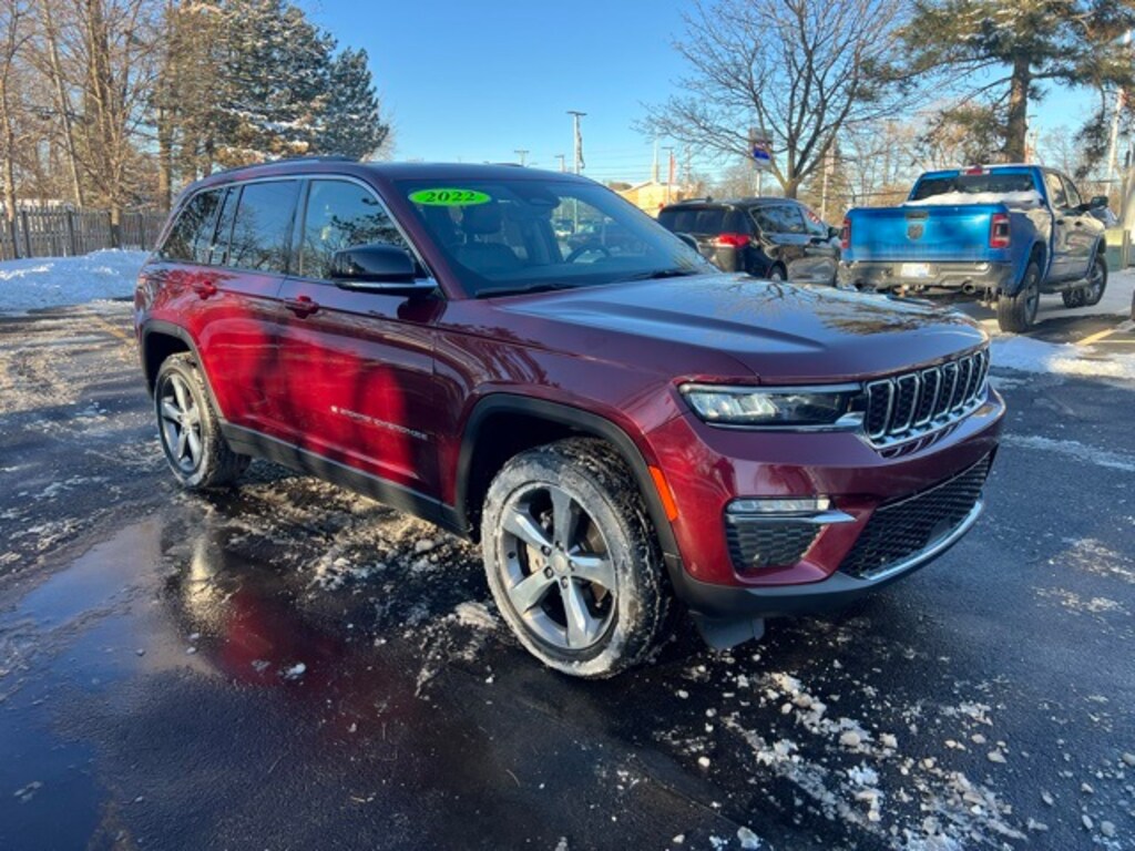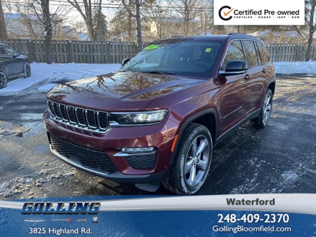 New Price! Certified. We are Michigan's #1 Certified Pre-Owned Dealer!, 3 month / 3000 mile bumper to bumper warranty with no deductible, 7-year/100,000-mile warranty!, Grand Cherokee Limited, 4D Sport Utility, 3.6L V6 24V VVT, 8-Speed Automatic, 4WD, Velvet Red Pearlcoat, Global Black w/Nappa Leather Seats or Nappa Leather Seats w/AAM, 10.1" Touchscreen Display, 220 Amp Alternator, 2nd-Row Manual Window Shades, 3.45 Rear Axle Ratio, 4-Wheel Disc Brakes, 4G LTE Wi-Fi Hotspot, 506 Watt Amplifier, 9 Amplified Speakers w/Subwoofer, Active Noise Control System, Air Conditioning, All Radio Equipped Vehicles, Alloy wheels, AM/FM radio: SiriusXM with 360L, Anti-whiplash front head restraints, Apple CarPlay, Audio memory, Auto High-beam Headlights, Auto-Dimming Exterior Driver Mirror, Automatic Headlamp Levelling System, Automatic temperature control, Brake assist, Bumpers: body-color, Capri Leather Seats, Capri Leather Seats w/Perforated Inserts, Compass, Connected Travel & Traffic Services, Connectivity - US/Canada, Delay-off headlights, Disassociated Touchscreen Display, Driver door bin, Driver vanity mirror, Dual front side impact airbags, Dual-Pane Panoramic Sunroof, Electronic Stability Control, For Details, Visit DriveUconnect.com, For More Info, Call 800-643-2112, Four wheel independent suspension, Front Bucket Seats, Front dual zone A/C, Front fog lights, Front/Rear Doors & Liftgate w/Passive Entry, Fully automatic headlights, Global Telematics Box Module (TBM), Google Android Auto, GPS Antenna Input, GPS Navigation, HD Radio, Heated door mirrors, Heated front seats, Heated rear seats, Heavy-Duty Engine Cooling, Integrated Center Stack Radio, Integrated Off-Road Camera, Integrated Voice Command w/Bluetooth, Intersection Collision Assist System, Luxury Tech Group II, Memory seat, Memory Steering Column, Normal Duty Suspension, Panic alarm, Park-Sense Front & Rear Park Assist w/Stop, ParkView Rear Back-Up Camera, Pirelli Brand Tires, Power door mirrors, Power driver seat, Power Liftgate, Power passenger seat, Power steering, Power Tilt/Telescope Steering Column, Power windows, Quick Order Package 22E, Radio data system, Radio: Uconnect 5 Nav w/10.1" Display, Radio: Uconnect 5 w/8.4" Display, Rain Sensitive Windshield Wipers, Rear Back-Up Camera Washer, Rear Load Levelling Suspension, Rear window defroster, Rear window wiper, Rearview Autodim Digital Display Mirror, Remote keyless entry, Roof rack: rails only, Security system, SiriusXM Radio Service, SiriusXM Satellite Radio, SiriusXM w/360L, Speed-Sensitive Wipers, Split folding rear seat, Spoiler, Steering wheel mounted audio controls, Surround View Camera System, Traction control, Trailer Hitch Zoom, Trailer Tow Prep Group (B), Turn signal indicator mirrors, USB Host Flip, Variably intermittent wipers, Ventilated Front Seats, Wheels: 20" x 8.5" Polished/Painted Aluminum, Wireless Charging Pad. CARFAX One-Owner.