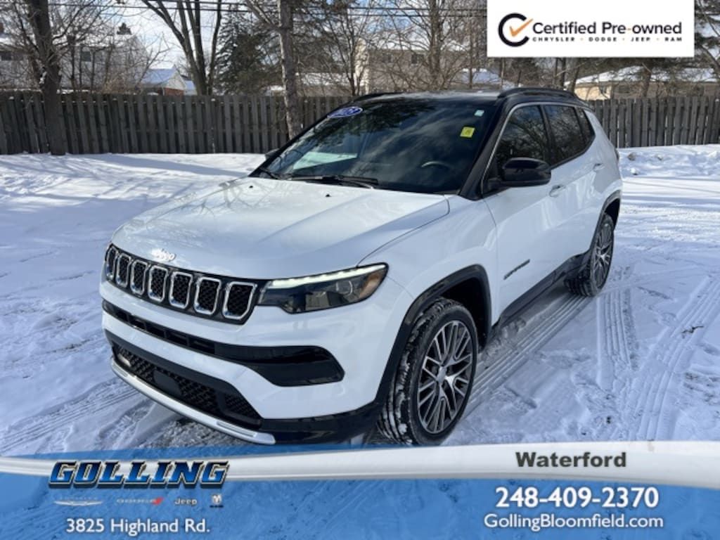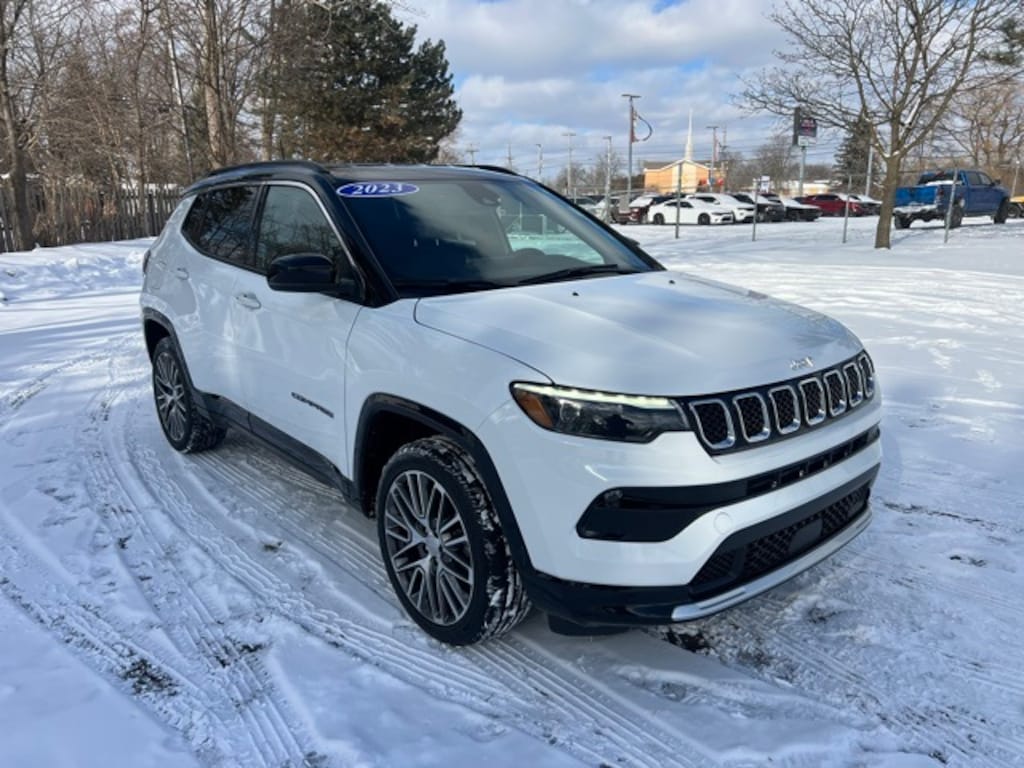Certified. We are Michigan's #1 Certified Pre-Owned Dealer!, 3 month 3,000 mile Powertrain Warranty $0 deductible, 3 month / 3000 mile bumper to bumper warranty with no deductible, 7-year/100,000-mile warranty!, Heated Seats**, Accident Free Carfax History Report, Carfax One Owner!!, Local Trade**, Drive In 55, USB Charging Ports, Backup Camera, Bluetooth, Leather Seats, Remote Start, Android Auto, Apple CarPlay, Keyless Access w/ Push Button Start, Smartphone App Integration, Voice Recognition, Compass Limited Elite, 4D Sport Utility, 2.0L I4 DOHC, 8-Speed Automatic, Bright White Clearcoat, Black w/Leatherette Seats or Premium Leather Trimmed Bucket Seats, 10.1" Touchscreen Display, 2nd Row USB Type A/C Charge Only, 4-Wheel Disc Brakes, 4G LTE Wi-Fi Hot Spot, Air Conditioning, Alexa Built-In, Alloy wheels, Auto High-beam Headlights, Automatic temperature control, Brake assist, Bumpers: body-color, Cluster 10.25" TFT Color Display, Connected Travel & Traffic Services, Cruise control, Delay-off headlights, Diamond Black Door Cladding, Diamond Black Exterior Sill, Diamond Black Fascias, Diamond Black Wheel Flares, Disassociated Touchscreen Display, Driver Seat Memory, Dual front impact airbags, Electronic Stability Control, Elite Group, Foot Activated Open 'N Go Liftgate, For Details, Visit DriveUconnect.com, For More Info, Call 800-643-2112, Four wheel independent suspension, Front anti-roll bar, Front Center Armrest w/Storage, Front dual zone A/C, Front fog lights, Fully automatic headlights, Global Telematics Box Module (TBM), GPS Navigation, HD Radio, Heated door mirrors, Heated steering wheel, Hidden Exhaust Tips-Dual, Illuminated entry, Integrated Voice Command w/Bluetooth, Leather Shift Knob, Leatherette Seats, LED Low/Highbeam Projector Headlamps, No Satellite Coverage w/HI/AK/PR/VI/GU, Overhead airbag, Panic alarm, ParkView Rear Back-Up Camera, Passenger door bin, Power 2-Way Passenger Lumbar Adjust, Power 8-Way Adjust Front Passenger Seat, Power door mirrors, Power driver seat, Power Liftgate, Power steering, Power windows, Premium Leather Trimmed Bucket Seats, Premium LED Fog Lamps, Premium Taillamps, Quick Order Package 29G, Radio: Uconnect 5 Nav w/10.1" Display, Rain sensing wipers, Rear window wiper, Remote keyless entry, Reversible Carpet/Vinyl Cargo Mat, Security system, SiriusXM Guardian - Included Trial (B), SiriusXM Radio Service, SiriusXM w/360L, Spoiler, Steering wheel mounted audio controls, Traction control, Turn signal indicator mirrors, Variably intermittent wipers, Wheels: 19" x 7.5" Painted Diamond Cut Aluminum. CARFAX One-Owner. Clean CARFAX.