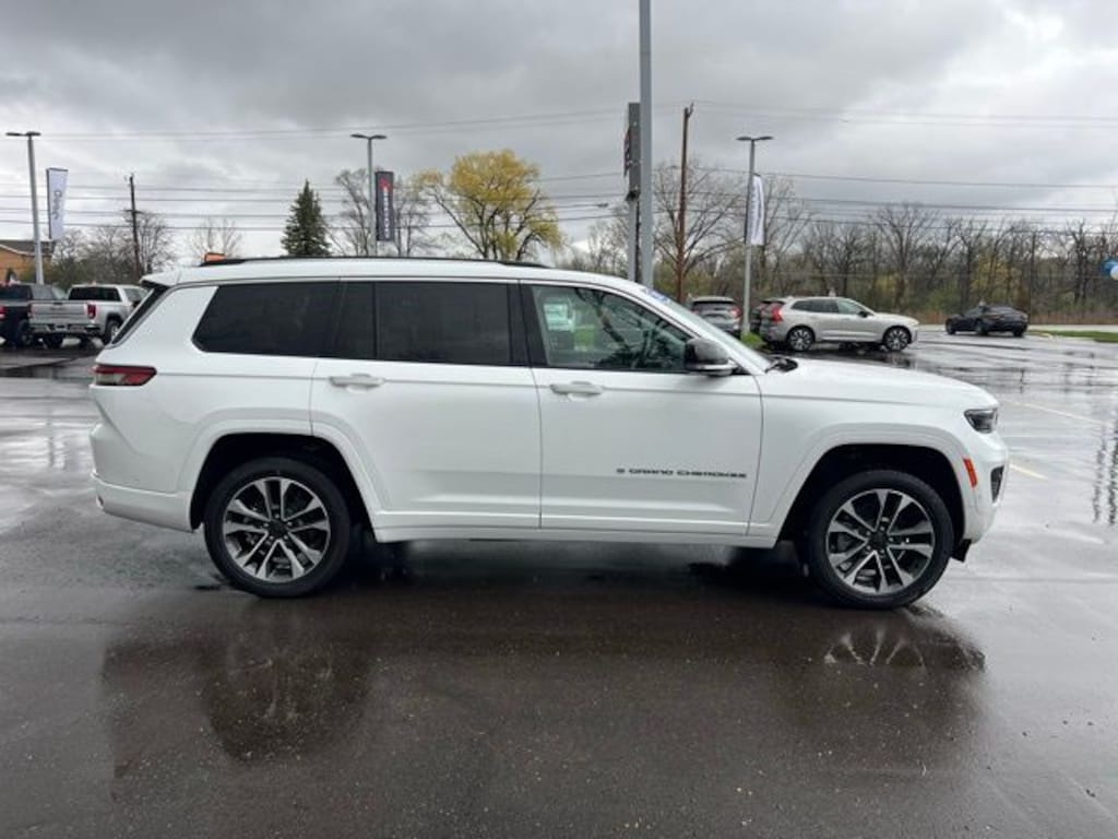 Certified. Accident Free Carfax History Report, Grand Cherokee L Overland, 4D Sport Utility, 3.6L V6 24V VVT, 8-Speed Automatic, 4WD, Bright White Clearcoat, Steel Gray/Global Black Leather, 10 Speakers, 2nd Row Manual Window Shades, 3.45 Rear Axle Ratio, 4-Wheel Disc Brakes, ABS brakes, Active Driving Assist System, Active Noise Control System, Adaptive suspension, Advanced Protech Group III, AM/FM radio: SiriusXM with 360L, ATC w/4 Zone Temp Control, Audio memory, Auto High-beam Headlights, Auto-dimming door mirrors, Auto-leveling suspension, Automatic temperature control, Aux Battery, Brake assist, Bumpers: body-color, Center Rear 3-Point Seat Belt, Cruise control, Delay-off headlights, Driver Power Seat Back Massage, Dual front impact airbags, Electronic Stability Control, Four wheel independent suspension, Front Center Armrest w/Storage, Front dual zone A/C, Front fog lights, Front Passenger Power Seat Back Massage, Front reading lights, Fully automatic headlights, Garage door transmitter, Hands-Free Active Driving Assist System, Heads-Up Display, Heated door mirrors, Heated steering wheel, Illuminated entry, Integrated Off-Road Camera, Interior Rear Facing Camera, Intersection Collision Assist System, Leather Wrapped Steering Wheel, Luxury Tech Group IV, Map-In-Cluster Display, Memory seat, Nappa Leather Seats (TL), Navigation System, Night Vision/Pedestrian-Animal Detection, Normal Duty Suspension, Panic alarm, Passenger door bin, Passenger Seat Memory, Power Adjust 12-Way Driver Seat, Power door mirrors, Power driver seat, Power Liftgate, Power moonroof, Power passenger seat, Power windows, Quick Order Package 22N, Radio data system, Radio: Uconnect 5 Nav w/10.1" Display, Rain sensing wipers, Rear Back Up Camera Washer, Rear window defroster, Rear window wiper, Rearview Autodim Digital Display Mirror, Reclining 3rd row seat, Remote keyless entry, Security system, Speed-Sensitive Wipers, Split folding rear seat, Spoiler, Steering wheel memory, Steering wheel mounted audio controls, Surround View Camera System, Traction control, Turn signal indicator mirrors, Variably intermittent wipers, Ventilated front seats, Wireless Charging Pad. Clean CARFAX.