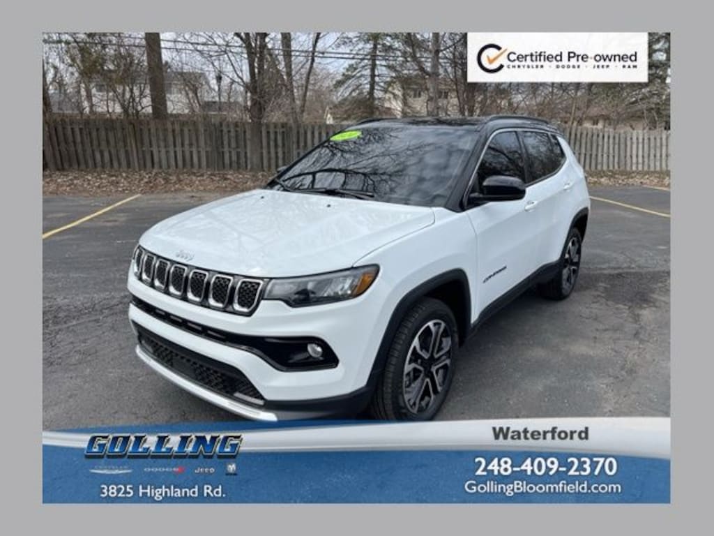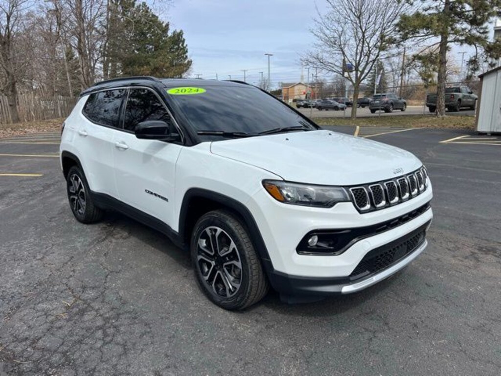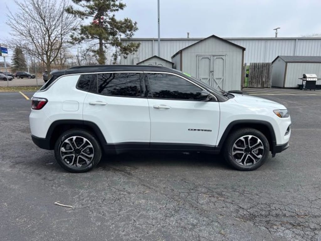 Certified. We are Michigan's #1 Certified Pre-Owned Dealer!, 7-year/100,000-mile warranty!, Accident Free Carfax History Report, Carfax One Owner!!, Compass Limited, 4D Sport Utility, 2.0L I4 DOHC, 8-Speed Automatic, 4WD, Bright White Clearcoat, Black w/Leatherette Seats or Premium Leather Trimmed Bucket Seats, 3.73 Final Drive Ratio, 6 Speakers, Air Conditioning, Alloy wheels, AM/FM radio: SiriusXM, Auto High-beam Headlights, Auto-dimming Rear-View mirror, Automatic temperature control, Brake assist, Bumpers: body-color, Compass, Delay-off headlights, Disassociated Touchscreen Display, Driver door bin, Driver vanity mirror, Electronic Stability Control, Four wheel independent suspension, Front Center Armrest w/Storage, Front dual zone A/C, Front fog lights, Front reading lights, Fully automatic headlights, Heated door mirrors, Leather Shift Knob, Leather steering wheel, Leatherette Seats, Outside temperature display, Overhead console, Panic alarm, ParkView Rear Back-Up Camera, Passenger door bin, Passenger vanity mirror, Power driver seat, Power steering, Power windows, Quick Order Package 29G Limited, Radio: Uconnect 5 w/10.1" Display, Rain sensing wipers, Rear seat center armrest, Rear window defroster, Rear window wiper, Remote keyless entry, Security system, SiriusXM Guardian - Included Trial (B), SiriusXM Radio Service, Steering wheel mounted audio controls, Tachometer, Telescoping steering wheel, Tilt steering wheel, Traction control, Trip computer, Variably intermittent wipers. CARFAX One-Owner. Clean CARFAX.