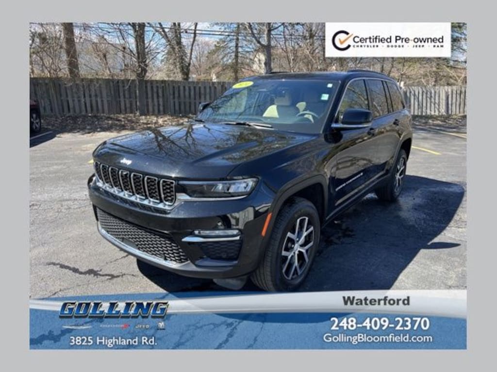 The right stuff! Luxury Tech II Group, Panoramic Sunroof and much more! Certified. We are Michigan's #1 Certified Pre-Owned Dealer!, 3 month 3,000 mile Powertrain Warranty $0 deductible, 3 month / 3000 mile bumper to bumper warranty with no deductible, 7-year/100,000-mile warranty!, Heated Seats**, Carfax One Owner!!, Leather*, USB Charging Ports, Steering Wheel Controls, Backup Camera, Bluetooth, Remote Start, Android Auto, Apple CarPlay, Keyless Access w/ Push Button Start, Smartphone App Integration, Voice Recognition, Grand Cherokee Limited Luxury Tech Group II, 4D Sport Utility, 3.6L V6 24V VVT, 8-Speed Automatic, 4WD, Diamond Black Crystal Pearlcoat, Wicker Beige/Black Artificial Leather, 2nd-Row Manual Window Shades, 6 Speakers, Air Conditioning, AM/FM radio: SiriusXM with 360L, Auto High-beam Headlights, Auto-Dimming Exterior Driver Mirror, Automatic temperature control, Brake assist, Capri Leatherette w/Axis II Seats, Cruise control, Delay-off headlights, Driver door bin, Dual-Pane Panoramic Sunroof, Electronic Stability Control, Front dual zone A/C, Front fog lights, Front/Rear Doors & Liftgate w/Passive Entry, Fully automatic headlights, Garage door transmitter, Heated door mirrors, Illuminated entry, Integrated Off-Road Camera, Intersection Collision Assist System, Luxury Tech Group II, Memory seat, Memory Steering Column, Navigation System, Panic alarm, ParkSense Front/Rear Park Assist w/Stop, ParkView Rear Back-Up Camera, Passenger vanity mirror, Power door mirrors, Power driver seat, Power Liftgate, Power steering, Power Tilt/Telescope Steering Column, Power windows, Quick Order Package 23E, Radio data system, Radio: Uconnect 5 Nav w/10.1" Display, Rain Sensitive Windshield Wipers, Rear Back-Up Camera Washer, Rear window defroster, Rearview Autodim Digital Display Mirror, Remote keyless entry, Security system, Spoiler, Steering wheel mounted audio controls, Surround View Camera System, Turn signal indicator mirrors, Ventilated Front Seats, Wireless Charging Pad. CARFAX One-Owner. Clean CARFAX.