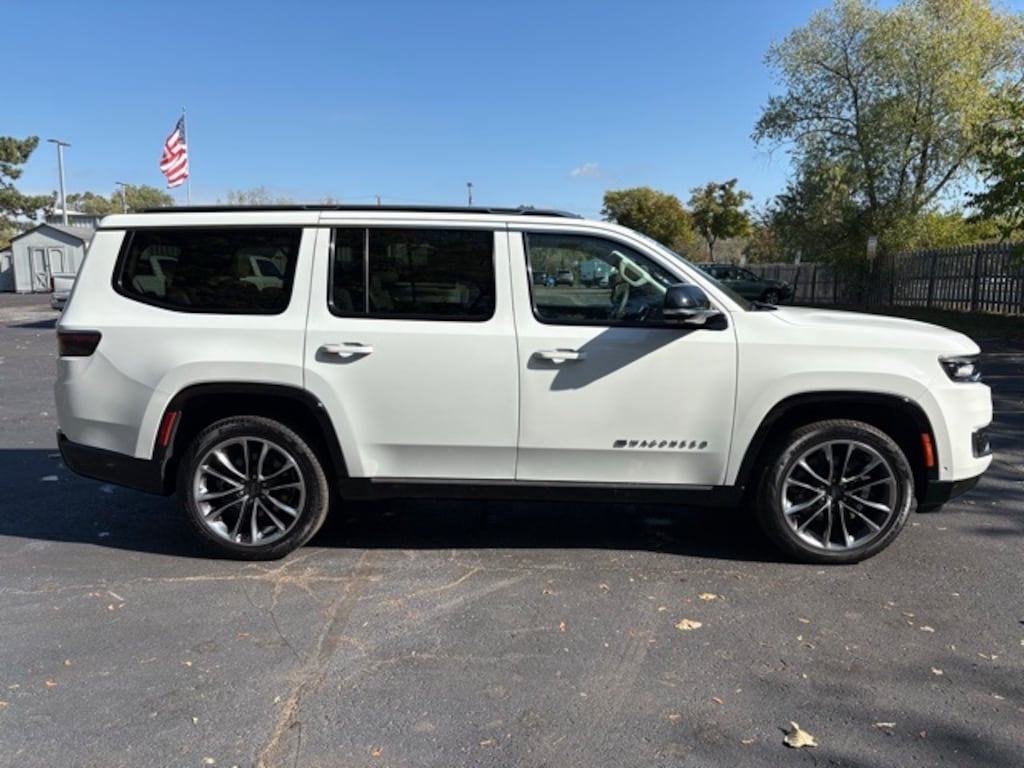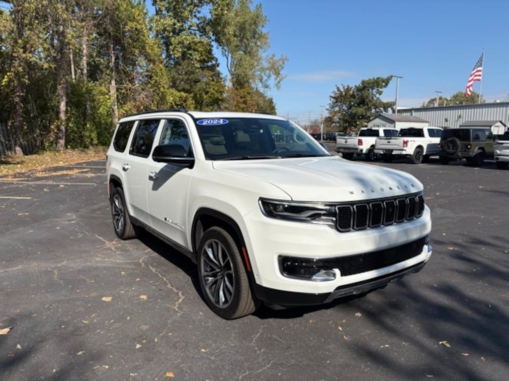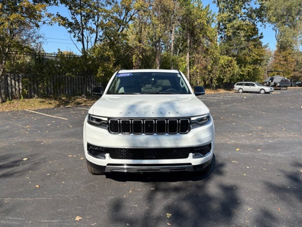 Certified. We are Michigans #1 Certified Pre-Owned Dealer, 7-year/100,000-mile warranty!, 3 month / 3000 mile bumper to bumper warranty extension with no deductible, JD Power retail is $72,900!, Wagoneer Series III, 4D Sport Utility, 3.0L I6, 8-Speed Automatic, 4WD, Bright White Clearcoat, Black Leather, 19 Speaker McIntosh Audio System, 2nd Row Manual Window Shades, 3 Panel Sunroof, 3.55 Rear Axle Ratio, 40/20/40 2nd Row Bench Power Tip/Slide, 8-Passenger Seating, Adjustable pedals, Adjustable Roof Rail Crossbars, Air Conditioning, All-Season Floor Mats, Amazon Fire TV Built-In, Apple CarPlay/Android Auto, Audio memory, Auto High-beam Headlights, Auto-dimming door mirrors, Auto-dimming Rear-View mirror, Auto-leveling suspension, Automatic temperature control, Brake assist, Cargo Cover, Cargo Tray, Compass, Convenience Group I, Cruise control, Delay-off headlights, Driver door bin, Driver vanity mirror, Drowsy Driver Detection, Electronic Stability Control, Exterior Parking Camera Rear, Flexible Seating Group, Four wheel independent suspension, Front dual zone A/C, Front fog lights, Front reading lights, Full Length Floor Console, Fully automatic headlights, Garage door transmitter, Genuine wood console insert, Genuine wood dashboard insert, Genuine wood door panel insert, Heated door mirrors, Heated steering wheel, Illuminated entry, Intersection Collision Assist System, Luxury Front & Rear Floor Mats, Memory seat, MOPAR Interior Protection Package, Navigation System, Normal Duty Suspension, Outside temperature display, P&P Park & Unpark Assist w/Stop System, Panic alarm, Passenger seat mounted armrest, Pedal memory, Power Deployable Running Boards, Power door mirrors, Power driver seat, Power Liftgate, Power steering, Power windows, Premium Group I, Quick Order Package 25N, Radio data system, Radio: Uconnect 5 Nav w/10.1" Display, Rain sensing wipers, Rear air conditioning, Rear dual zone A/C, Rear Seat Video Group 1, Rear window defroster, Rear window wiper, Remote keyless entry, Reversible Carpet/Vinyl Cargo Mat, Seatback Video Screens, Security system, Side Distance Warning, Speed-sensing steering, Speed-Sensitive Wipers, Steering wheel memory, Steering wheel mounted audio controls, Surround View Camera System, Traction control, Traffic Sign Recognition, Turn signal indicator mirrors, Variably intermittent wipers, Video USB Port, Wheels: 22" x 9.0" Premium 3 Aluminum. CARFAX One-Owner.