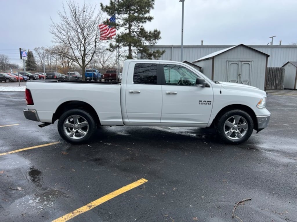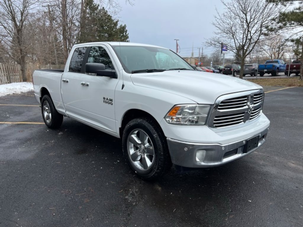 Certified. We are Michigan's #1 Certified Pre-Owned Dealer!, 3 month 3,000 mile Powertrain Warranty $0 deductible, 3 month / 3000 mile bumper to bumper warranty with no deductible, 1500 Big Horn, 4D Quad Cab, 3.6L V6 24V VVT, 8-Speed Automatic, 4WD, Bright White Clearcoat, Diesel Gray/Black w/Cloth 40/20/40 Bench Seat or Premium Cloth 40/20/40 Bench Seat or Premium Cloth 40/20/40 Bench Seat or Premium Cloth Bucket Seats or Premium Cloth Bucket Seats, 8.4" Touchscreen Display, Air Conditioning, Alloy wheels, AM/FM radio: SiriusXM, Apple CarPlay, Auto-Dimming Exterior Mirrors, Auto-Dimming Rear-View Mirror, Auxiliary 115V Power Outlet, Big Horn Badge, Big Horn Regional Package, Brake assist, Bright/Bright Billets Grille, Center Hub, Charge Only Remote USB Port, Class IV Receiver Hitch, Class IV Receiver Hitch (DISC), Compass, Delay-off headlights, Driver door bin, Electric Shift-On-Demand Transfer Case, Electroluminescent Instrument Cluster, Electronic Stability Control, Exterior Mirrors Courtesy Lamps, Exterior Mirrors w/Supplemental Signals, Folding Flat Load Floor Storage, Front Fog Lamps, Front wheel independent suspension, Fully automatic headlights, Glove Box Lamp, HD Radio, Heated Front Seats, Heated Seats & Wheel Group, Heated Steering Wheel, Humidity Sensor, Leather Wrapped Steering Wheel, LED Bed Lighting, Low tire pressure warning, Occupant sensing airbag, Overhead Console w/Garage Door Opener, ParkSense Rear Park Assist System, ParkView Rear Back-Up Camera, Power 10-Way Driver Seat, Power door mirrors, Power Heated Fold-Away Mirrors, Power Lumbar Adjust, Power steering, Power windows, Power-Folding Mirrors, Premium Cloth 40/20/40 Bench Seat, Quick Order Package 22S Big Horn, Radio data system, Radio: Uconnect 4C w/8.4" Display, Rear 60/40 Split Folding Seat, Rear Dome w/On/Off Switch Lamp, Rear step bumper, Remote keyless entry, Remote Start System, Security Alarm, SiriusXM Satellite Radio, Steering Wheel Mounted Audio Controls, Sun Visors w/Illuminated Vanity Mirrors, Tachometer, Tilt steering wheel, Tip Start, Trip computer, Universal Garage Door Opener, USB Host Flip, Voltmeter, Wheels: 20" x 8" Aluminum Chrome Clad.
