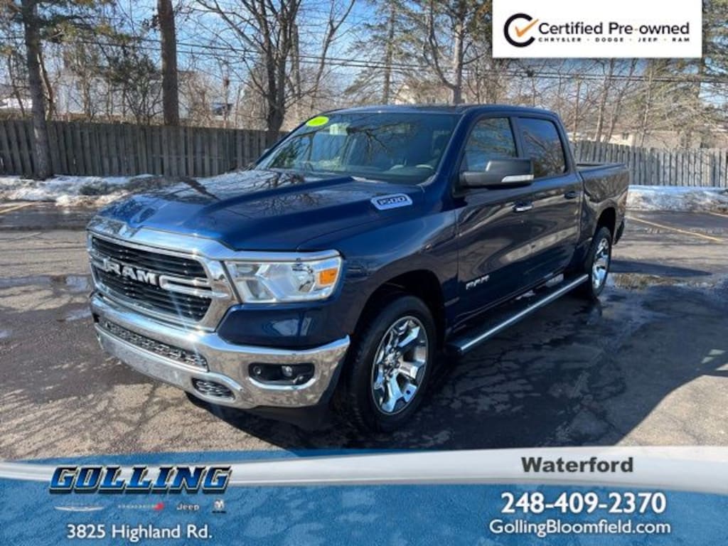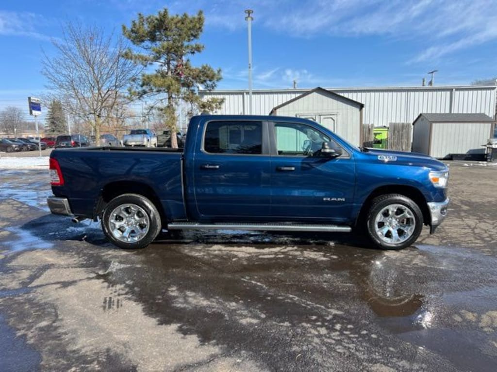Certified. We are Michigan's #1 Certified Pre-Owned Dealer!, 3 month 3,000 mile Powertrain Warranty $0 deductible, 3 month / 3000 mile bumper to bumper warranty with no deductible, 1500 Big Horn/Lone Star, 4D Crew Cab, 3.6L V6 24V VVT, 8-Speed Automatic, 4WD, Patriot Blue Pearlcoat, Diesel Gray/Black w/Cloth Bench Seat or Deluxe Cloth Bucket Seats, Big Horn/Lone Star Package 23Z, 115V Auxiliary Rear Power Outlet, 2 USB Full Function/Charge Only Media Hub, 3 Rear Seat Head Restraints, 4 Adjustable Cargo Tie-Down Hooks, 4 Way Front Headrests, 4-Wheel Disc Brakes, 400W Inverter, 48V Belt Starter Generator, 6 Speakers, 8.4" Touchscreen Display, ABS brakes, Air Conditioning, Air Conditioning ATC w/Dual Zone Control, Alloy wheels, AM/FM radio, Auto-Dimming Rear-View Mirror, Auxiliary 115V Power Outlet, Bed Utility Group, Big Horn IP Badge, Big Horn Level 2 Equipment Group, Brake assist, Bumpers: chrome, Class IV Receiver Hitch, Cloth Bench Seat, Cluster 7.0" TFT Color Display, Cruise control, Dampened Tailgate, Delay-off headlights, Dual front impact airbags, Electronic Stability Control, Foam Bottle Insert (Door Trim Panel), Front fog lights, Front wheel independent suspension, Fully automatic headlights, Glove Box Lamp, GPS Antenna Input, Heated door mirrors, Heated Front Seats, Heated Steering Wheel, Integrated Center Stack Radio, Low tire pressure warning, Occupant sensing airbag, Overhead airbag, Panic alarm, ParkSense Front/Rear Park Assist w/Stop, ParkView Rear Back-Up Camera, Pick-Up Box Lighting, Power 4-Way Driver Lumbar Adjust, Power 8-Way Driver Seat, Power Adjustable Pedals, Power door mirrors, Power Heated Fold Away Mirrors, Power steering, Power windows, Radio data system, Radio: Uconnect 3 w/5" Display, Radio: Uconnect 4 w/8.4" Display, Rear 60/40 Folding Seat, Rear anti-roll bar, Rear Dome w/On/Off Switch Lamp, Rear Power Sliding Window, Rear step bumper, Rear Wheelhouse Liners, Rear Window Defroster, Remote keyless entry, Remote Start System, Security Alarm, Single Disc Remote CD Player, SiriusXM Satellite Radio, Split folding rear seat, Spray In Bedliner, Steering Wheel Mounted Audio Controls, Sun Visors w/Illuminated Vanity Mirrors, Tachometer, Telescoping steering wheel, Tilt steering wheel, Traction control, Trip computer, Universal Garage Door Opener, Variably intermittent wipers, Voltmeter, Wheel to Wheel Side Steps.
