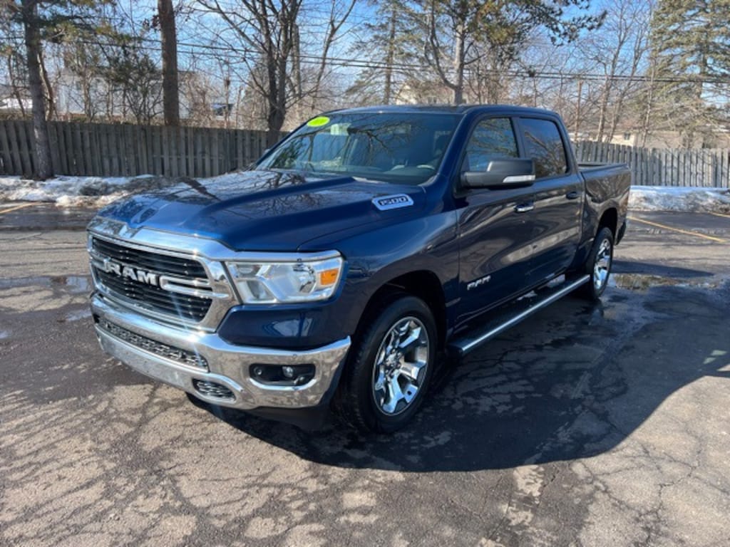 Certified. We are Michigan's #1 Certified Pre-Owned Dealer!, 3 month 3,000 mile Powertrain Warranty $0 deductible, 3 month / 3000 mile bumper to bumper warranty with no deductible, 1500 Big Horn/Lone Star, 4D Crew Cab, 3.6L V6 24V VVT, 8-Speed Automatic, 4WD, Patriot Blue Pearlcoat, Big Horn/Lone Star Package 23Z, 115V Auxiliary Rear Power Outlet, 2 USB Full Function/Charge Only Media Hub, 3 Rear Seat Head Restraints, 4 Adjustable Cargo Tie-Down Hooks, 4 Way Front Headrests, 4-Wheel Disc Brakes, 400W Inverter, 48V Belt Starter Generator, 6 Speakers, 8.4" Touchscreen Display, ABS brakes, Air Conditioning, Air Conditioning ATC w/Dual Zone Control, Alloy wheels, AM/FM radio, Auto-Dimming Rear-View Mirror, Auxiliary 115V Power Outlet, Bed Utility Group, Big Horn IP Badge, Big Horn Level 2 Equipment Group, Brake assist, Bumpers: chrome, Class IV Receiver Hitch, Cloth Bench Seat, Cluster 7.0" TFT Color Display, Cruise control, Dampened Tailgate, Delay-off headlights, Dual front impact airbags, Electronic Stability Control, Foam Bottle Insert (Door Trim Panel), Front fog lights, Front wheel independent suspension, Fully automatic headlights, Glove Box Lamp, GPS Antenna Input, Heated door mirrors, Heated Front Seats, Heated Steering Wheel, Integrated Center Stack Radio, Low tire pressure warning, Occupant sensing airbag, Overhead airbag, Panic alarm, ParkSense Front/Rear Park Assist w/Stop, ParkView Rear Back-Up Camera, Pick-Up Box Lighting, Power 4-Way Driver Lumbar Adjust, Power 8-Way Driver Seat, Power Adjustable Pedals, Power door mirrors, Power Heated Fold Away Mirrors, Power steering, Power windows, Radio data system, Radio: Uconnect 3 w/5" Display, Radio: Uconnect 4 w/8.4" Display, Rear 60/40 Folding Seat, Rear anti-roll bar, Rear Dome w/On/Off Switch Lamp, Rear Power Sliding Window, Rear step bumper, Rear Wheelhouse Liners, Rear Window Defroster, Remote keyless entry, Remote Start System, Security Alarm, Single Disc Remote CD Player, SiriusXM Satellite Radio, Split folding rear seat, Spray In Bedliner, Steering Wheel Mounted Audio Controls, Sun Visors w/Illuminated Vanity Mirrors, Tachometer, Telescoping steering wheel, Tilt steering wheel, Traction control, Trip computer, Universal Garage Door Opener, Variably intermittent wipers, Voltmeter, Wheel to Wheel Side Steps.
