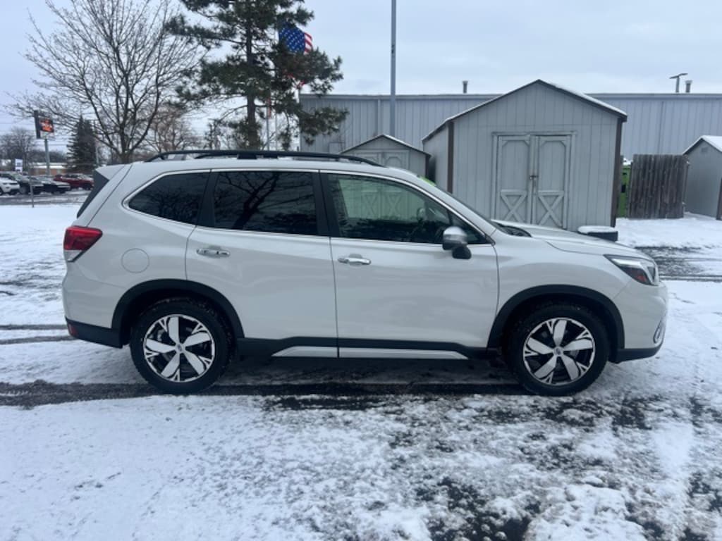 Certified. We are Michigan's #1 Certified Pre-Owned Dealer!, 3 month 3,000 mile Powertrain Warranty $0 deductible, 3 month / 3000 mile bumper to bumper warranty with no deductible, JD Power retail is $31,225!, Forester Touring, 4D Sport Utility, 2.5L 4-Cylinder DOHC 16V VVT, Lineartronic CVT, AWD, Crystal White Pearl, Black w/Perforated Leather-Trimmed Upholstery, 3.70 Axle Ratio, Air Conditioning, All-Weather Floor Liners, Alloy wheels, Auto High-beam Headlights, Auto-Dimming Exterior Mirror w/Approach Lighting, Auto-Dimming Mirror w/Compass & HomeLink, Automatic temperature control, Brake assist, Bumpers: body-color, Cruise control, Driver door bin, Driver vanity mirror, Driver's Side Mirror - Bulk, Dual front impact airbags, Electronic Stability Control, Emergency communication system: STARLINK Safety and Security, Exterior Mirror Hardware Kit, Exterior Parking Camera Rear, Four wheel independent suspension, Front Bucket Seats, Front Center Armrest, Front dual zone A/C, Front fog lights, Front reading lights, Fully automatic headlights, harman kardon 576W Amp & Speaker System, harman/kardon® Speakers, Heated door mirrors, Heated Front Bucket Seats, Heated front seats, Heated rear seats, Heated steering wheel, HVAC memory, Illuminated entry, Knee airbag, Leather Shift Knob, Low tire pressure warning, Memory seat, Navigation System, Occupant sensing airbag, Outside temperature display, Overhead airbag, Overhead console, Paddle-Shift Control Switches, Panic alarm, Passenger vanity mirror, Passenger's Side Mirror - Bulk, Perforated Leather-Trimmed Upholstery, Power door mirrors, Power driver seat, Power moonroof: Panoramic, Power passenger seat, Power steering, Power windows, Radio: Subaru Starlink 8.0" Multimedia Nav System, Rear anti-roll bar, Rear seat center armrest, Rear Seatback Protector, Rear window defroster, Rear window wiper, Remote keyless entry, Roof rack: rails only, Speed-sensing steering, Split folding rear seat, STARLINK/Apple CarPlay/Android Auto, Steering wheel mounted audio controls, Tachometer, Telescoping steering wheel, Tilt steering wheel, Traction control, Trip computer, Turn signal indicator mirrors, Variably intermittent wipers. CARFAX One-Owner. Clean CARFAX.