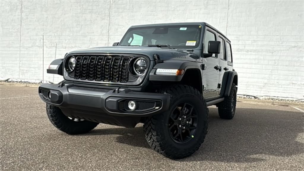 Check out the great features on this charming-looking and fun 2026 Jeep Wrangler Convenience Group (2-Door Passive Entry, Front Door Locks, Air Conditioning w/Auto Temperature Control, Air Filtering, Cluster 7.0" TFT Color Display, Emergency/Assistance Call, Heated Front Seats, Heated Steering Wheel, Remote Start System, and Universal Garage Door Opener), Quick Order Package 24W Willys ( Wiring Harness 7 & 4 Pin, 4-Wheel Drive Swing Gate Decal, Advanced Brake Assist, Automatic Headlamps, Auxiliary Switches, Black Grille, Class II Receiver Hitch, Conventional Differential Front Axle, Corning Gorilla Glass, Dana M210 Wide HD Tube Front Axle, Dana M220 Wide Rear Axle, Daytime Running Lamps LED Accents, Deep Tint Sunscreen Windows, E-Locker Rear Axle, Enhanced Adaptive Cruise Control, Front LED Fog Lamps, Full Speed Forward Collision Warning Plus, Injection Molded Black Rear Bumper, LED Premium Reflector Headlamps, Mold In Color Bumper w/Gloss Black, Molded in Color Rubicon Highline Flare, MOPAR All-Weather Floor Mats, Off-Road Plus Mode, Power Heated Mirrors, Premium Wrapped Steering Wheel, Security Alarm, Sun Visors w/Illuminated Vanity Mirrors, Wheels: 17" x 7.5" Painted Black, Willy's Suspension, and Willys Hood Decal), Trailer Tow & Aux Switch Group, 4-Wheel Disc Brakes, 8 Speakers, ABS brakes, Air Conditioning, AM/FM radio: SiriusXM with 360L, Apple CarPlay/Android Auto, Aux Battery, Black 3-Piece Hard Top, Brake assist, Cloth Low-Back Bucket Seats, Compass, Cruise control, Delay-off headlights, Driver door bin, Driver vanity mirror, Dual front impact airbags, Dual front side impact airbags, Electronic Stability Control, Freedom Panel Storage Bag, Front anti-roll bar, Front Bucket Seats, Front Center Armrest w/Storage, Front fog lights, Front reading lights, Illuminated entry, Integrated roll-over protection, Low tire pressure warning, Non-Lock Fuel Cap w/o Discriminator, Normal Duty Suspension, Occupant sensing airbag, Outside temperature display, Overhead airbag, Panic alarm, ParkView Rear Back-Up Camera, Passenger door bin, Passenger vanity mirror, Power steering, Power windows, Radio data system, Radio: Uconnect 5 w/12.3" Display, Rear anti-roll bar, Rear reading lights, Rear Window Defroster, Rear Window Wiper/Washer, Remote keyless entry, Split folding rear seat, Steering wheel mounted audio controls, Stop-Start Dual Battery System, Tachometer, Telescoping steering wheel, Tilt steering wheel, Traction control, Trip computer, Variably intermittent wipers, and Wheels: 17" x 7.5" Black Steel Styled. Price includes: $1500 - 2026 National Retail Bonus Cash . Exp. 12/01/2025