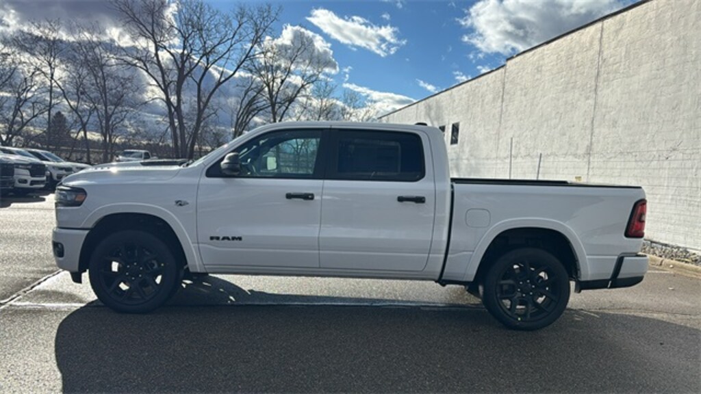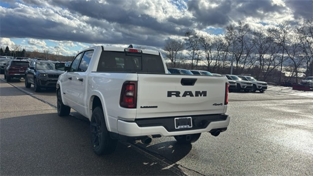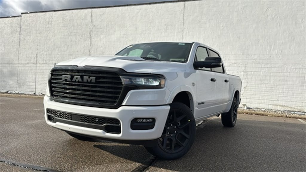 Check out the great features on this superb 2026 Ram 1500 Laramie Level 2 Equipment Group (14.4" Touchscreen Display, 4G LTE Wi-Fi Hot Spot, Cluster 12" TFT Color Display, Connected Travel and Traffic Services, Connectivity - US/Canada, Front Passenger Interactive Display, GPS Navigation, Harman/Kardon 19 Speaker Premium Sound, Integrated Center Stack Radio, Integrated Voice Command with Bluetooth, Power Tailgate, Radio: Uconnect 5 Nav with 14.4" Display, Rain Sensitive Windshield Wipers, SiriusXM Radio Service, SiriusXM with 360L, and USB Host Flip), Night Edition (Accent Color Door Handles, Accent Color Premium Power Mirrors, Accent Color Tailgate Handle, Anti-Spin Differential Rear Axle, Auto Power-Folding Mirrors, Auto-Dimming Exterior Driver Mirror, Black Exterior Truck Badging, Black Headlamp Bezels, Black Interior Accents, Black Painted Exterior Mirrors Caps, Black Tail Lamp Bezels, Body Color Front Bumper, Body Color Rear Bumper with Step Pads, Convex Wide-Angle Exterior Mirror Insert, Dual Exhaust with Black Tips, Exterior Mirrors Approach Lamps, Exterior Mirrors Courtesy Lamps, Exterior Mirrors with Heating Element, Exterior Mirrors with Memory, Exterior Mirrors with Supplemental Signals, Grille Surround 3 Black Texture 2 Black, Pirelli Brand Tires, Proximity Approach/Departure Lamps, RAM Grille Badge - Black, Sport Performance Hood, and Wheels: 22" x 9" Forged Aluminum), Quick Order Package 27H Laramie, 10 Speakers, 4-Wheel Disc Brakes, ABS brakes, Active Noise Control System, Air Conditioning, Alloy wheels, AM/FM radio: SiriusXM with 360L, Apple CarPlay/Android Auto, Audio memory, Auto High-beam Headlights, Auto-dimming door mirrors, Auto-dimming Rear-View mirror, Automatic temperature control, Brake assist, Bumpers: chrome, Chrome Exterior Mirrors, Compass, Cruise control, Delay-off headlights, Driver door bin, Driver vanity mirror, Dual front impact airbags, Dual front side impact airbags, Electronic Stability Control, Front anti-roll bar, Front Bucket Seats, Front Center Armrest w/Storage, Front dual zone A/C, Front fog lights, Front reading lights, Front wheel independent suspension, Fully automatic headlights, Garage door transmitter, Heated door mirrors, Heated front seats, Heated rear seats, Heated steering wheel, Illuminated entry, Leather steering wheel, Leather Trimmed Bucket Seats, Low tire pressure warning, Manufacturer's Statement of Origin, Memory seat, MOPAR Front and Rear Rubber Floor Mats, Navigation System, Occupant sensing airbag, Off-Road Information Pages, Outside temperature display, Overhead airbag, Overhead console, Panic alarm, ParkView Rear Back-Up Camera, Passenger door bin, Passenger vanity mirror, Power door mirrors, Power driver seat, Power passenger seat, Power steering, Power windows, Radio data system, Radio: Uconnect 5 Navigation with 12.0" Display, RAM Grille Badge - Chrome, Rear anti-roll bar, Rear reading lights, Rear seat center armrest, Price includes: $3500 - 2026 National Retail Consumer Cash . Exp. 02/02/2026 $500 - 2026 Midwest BC SFS Bonus Cash. Exp. 0