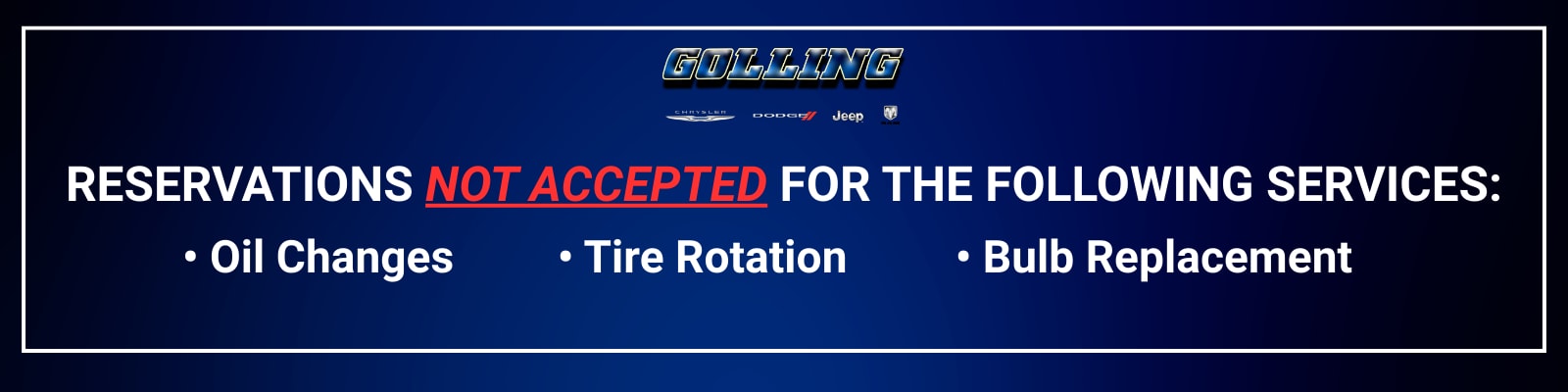 Whether you need an oil change, tire rotation, or brake repair, the team at Golling Chrysler Dodge Jeep Ram knows how to deliver the high-quality care your vehicle deserves. Our local Bloomfield Hills, Michigan service center is equipped with state-of-the-art repair equipment and certified technicians to ensure you leave our lot with repairs that last. Not only do we offer incredible service coupons, but we also make it easy to keep up-to-date with the required maintenance through our no-appointment-needed Express Service lane. Whether you're from Troy or Waterford Township, learn more about our repair and service options, then complete our online scheduling form to set up your next appointment.