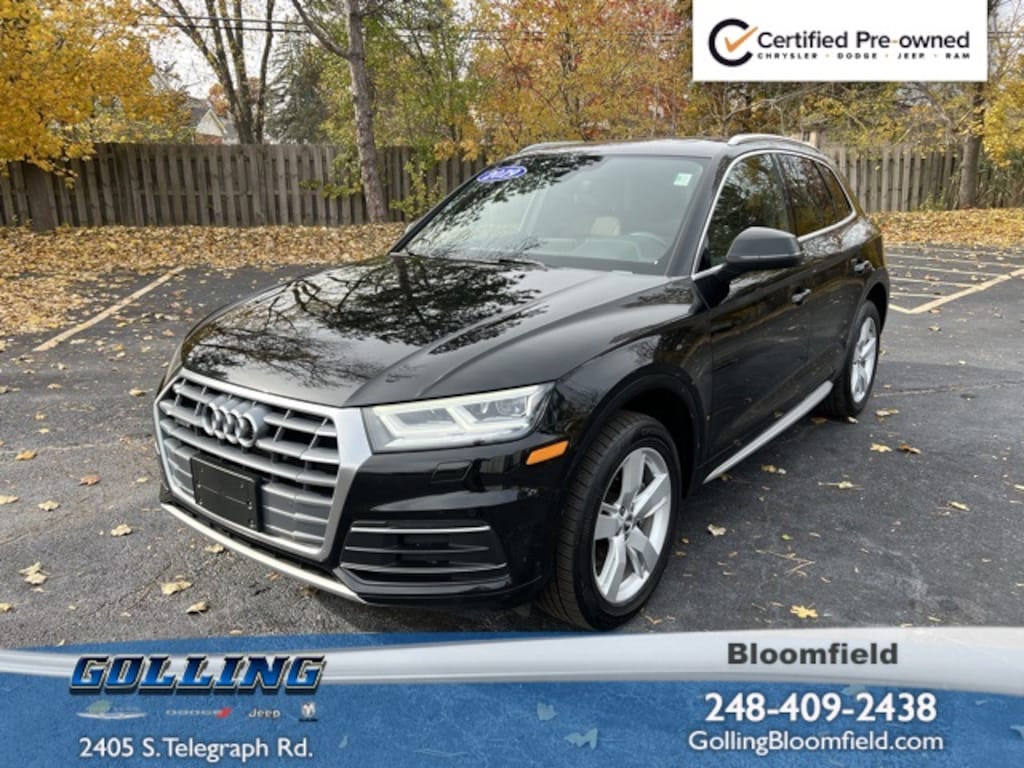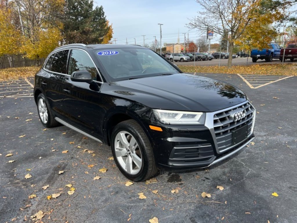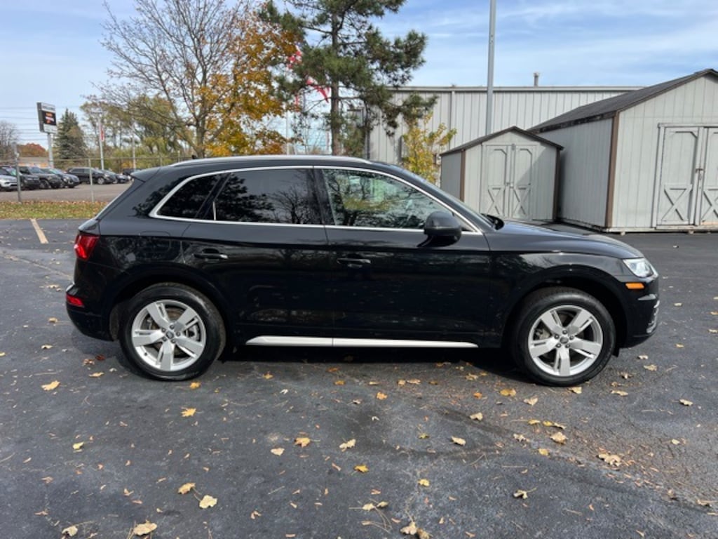 Certified. 3 month 3,000 mile Powertrain Warranty $0 deductible, 3 month / 3000 mile bumper to bumper warranty with no deductible, Accident Free Carfax History Report, Q5 2.0T Premium Plus quattro, 4D Sport Utility, 2.0L TFSI, 7-Speed Automatic S tronic, quattro, Black Metallic, Nougat Brown w/Leather Seating Surfaces, 10 Speakers, 5.302 Axle Ratio, Air Conditioning, All-Weather Floor Mats, Alloy wheels, Audi Advanced Key, Audi Beam-Rings, Audi Connect PRIME & PLUS, Audi Phone Box, Audi Pre Sense Rear, Audi Side Assist, Audi smartphone interface (Apple CarPlay/Android Auto), Audi Virtual Cockpit, Auto-Dimming Power Folding Mirrors, Auto-dimming Rear-View mirror, Automatic temperature control, Brake assist, Bumpers: body-color, Cold Weather Package, Compass, Convenience Package, Cruise control, Delay-off headlights, Driver door bin, Driver Seat Memory, Driver vanity mirror, Dual front side impact airbags, Electronic Stability Control, Emergency communication system: Audi connect CARE, Exterior Parking Camera Rear, Four wheel independent suspension, Front anti-roll bar, Front Bucket Seats, Front Center Armrest, Front dual zone A/C, Front fog lights, Front reading lights, Garage door transmitter: HomeLink, Genuine wood console insert, Genuine wood dashboard insert, Genuine wood door panel insert, Gray Brown Fine Grain Ash Natural Wood Inlays, Heated 8-Way Power Front Bucket Seats, Heated door mirrors, Heated front seats, Heated Rear Seats, Heated Steering Wheel, High intensity discharge headlights: Xenon plus, Illuminated entry, Leather Seating Surfaces, Leather Shift Knob, Leather steering wheel, Leatherette Covered Center Console & Door Armrests, LED Headlights, Low tire pressure warning, Occupant sensing airbag, Outside temperature display, Overhead airbag, Overhead console, Panic alarm, Panoramic Sunroof, Parking System Plus (Front/Rear Acoustic Sensors), Passenger vanity mirror, Power door mirrors, Power driver seat, Power Liftgate, Power passenger seat, Power steering, Power windows, Premium Plus Package, Radio: Audi MMI Navigation Plus w/MMI Touch, Rain sensing wipers, Rear air conditioning, Rear anti-roll bar, Rear fog lights, Rear Load Sill/Door Cup/Door Edge Paint Protection, Rear reading lights, Rear seat center armrest, Rear window defroster, Rear window wiper, Remote keyless entry, Roof rack, Security system, SiriusXM All Access Service, Speed-sensing steering, Speed-Sensitive Wipers, Split folding rear seat, Spoiler, Stainless Steel Door Sills, Steering wheel mounted audio controls, Tachometer, Telescoping steering wheel, Tilt steering wheel, Traction control, Trip computer, Turn signal indicator mirrors, USB Charge Ports for Rear Seats, Variably intermittent wipers, Wheels: 19" 5-Arm-Wing Design. Clean CARFAX.