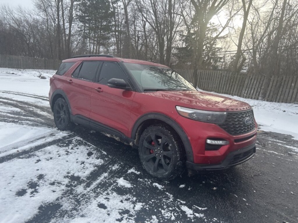 Certified. We are Michigan's #1 Certified Pre-Owned Dealer!, 3 month 3,000 mile Powertrain Warranty $0 deductible, 3 month / 3000 mile bumper to bumper warranty with no deductible, Local Trade**, JD Power retail is $31,225!, Explorer ST, 4D Sport Utility, 3.0L EcoBoost V6, 10-Speed Automatic, 4WD, Rapid Red Metallic Tinted Clearcoat, Ebony w/Leather Htd/Ventilated Sport Captain's Chairs or Leather Htd/Ventilated Sport Captain's Chairs, 10.1" LCD Capacitive Portrait Touchscreen, 2 Additional Speakers, 3rd row seats: bench, 4-Wheel Disc Brakes, ABS brakes, Air Conditioning, Alloy wheels, Auto-dimming door mirrors, Auto-dimming Rear-View mirror, Automatic temperature control, Brake assist, Bumpers: body-color, Compass, Cruise control, Driver door bin, Driver vanity mirror, Dual front impact airbags, Dual front side impact airbags, Electronic Stability Control, Equipment Group 400A, Exterior Parking Camera Rear, FordPass Connect, Four wheel independent suspension, Front & Second Row Floor Liners, Front anti-roll bar, Front Bucket Seats, Front Center Armrest, Front dual zone A/C, Front fog lights, Front reading lights, Fully automatic headlights, Garage door transmitter: HomeLink, Heated door mirrors, Heated front seats, Heated rear seats, Heated steering wheel, Illuminated entry, Knee airbag, Leather Htd/Ventilated Sport Captain's Chairs, Leather steering wheel, Low tire pressure warning, Memory seat, Navigation System, Occupant sensing airbag, Outside temperature display, Overhead airbag, Overhead console, Panic alarm, Passenger door bin, Passenger vanity mirror, Performance Front & Rear Brakes, Power door mirrors, Power driver seat, Power Liftgate, Power passenger seat, Power windows, Premium Technology Package, Radio data system, Radio: B&O Sound System by Bang & Olufsen, Rain sensing wipers, Rear air conditioning, Rear anti-roll bar, Rear reading lights, Rear window defroster, Rear window wiper, Remote keyless entry, Roof rack: rails only, Security system, Speed-sensing steering, Speed-Sensitive Wipers, Split folding rear seat, Spoiler, Sport steering wheel, ST Street Pack, Steering wheel memory, Steering wheel mounted audio controls, SYNC 3 Communications & Entertainment System, SYNC 3/Apple CarPlay/Android Auto, Tachometer, Telescoping steering wheel, Tilt steering wheel, Traction control, Trip computer, Turn signal indicator mirrors, Twin Panel Moonroof, Variably intermittent wipers, Ventilated front seats, Voice-Activated Touchscreen Navigation System.