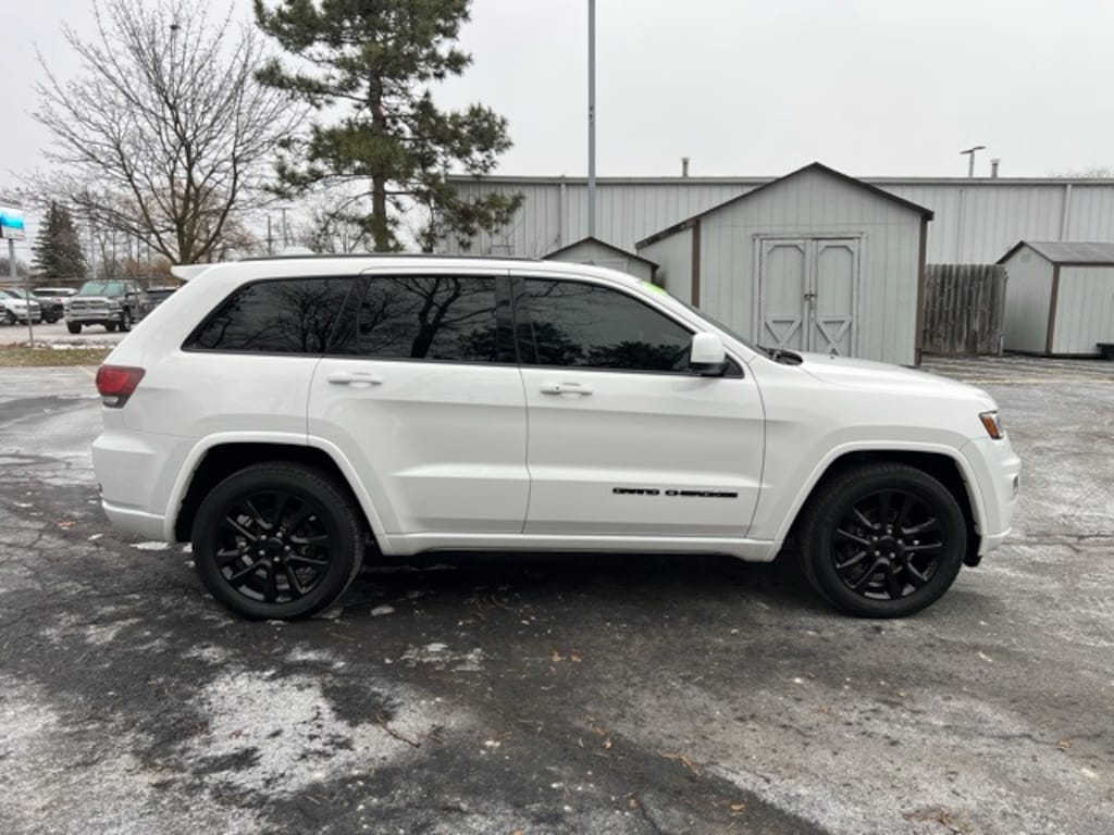 Certified. We are Michigan's #1 Certified Pre-Owned Dealer!, 3 month 3,000 mile Powertrain Warranty $0 deductible, 3 month / 3000 mile bumper to bumper warranty with no deductible, JD Power retail is $22,025!, Grand Cherokee Altitude, 4D Sport Utility, 3.6L V6 24V VVT, 8-Speed Automatic, Bright White Clearcoat, Black w/Leather/Perforated Suede SRT Seats or Laguna Leather Seats, 3.45 Rear Axle Ratio, 4-Wheel Disc Brakes, 4G LTE Wi-Fi Hot Spot, 5-Year SiriusXM Traffic Service, 5-Year SiriusXM Travel Link Service, 506 Watt Amplifier, 6 Speakers, 8.4" Touchscreen Display, ABS brakes, Active Noise Control System, Air Conditioning, Alloy wheels, AM/FM radio, Anti-whiplash front head restraints, Apple CarPlay, Apple CarPlay/Android Auto, Auto High Beam Headlamp Control, Auto-Dimming Rear-View Mirror, Automatic temperature control, Auxiliary 115V Power Outlet, Bi-Xenon High-Intensity Discharge Headlamps, Body Color Shark Fin Antenna, Brake assist, Bumpers: body-color, Cloth Bucket Seats, Compass, Cruise control, Dark Lens Taillamps, Delay-off headlights, Disassociated Touchscreen Display, Driver door bin, Driver vanity mirror, Dual front impact airbags, Electronic Stability Control, For Details Visit DriveUconnect.com, Four wheel independent suspension, Front anti-roll bar, Front Bucket Seats, Front dual zone A/C, Front fog lights, Front LED Fog Lamps, Front reading lights, Fully automatic headlights, Gloss Black Rear Fascia Applique, Google Android Auto, GPS Antenna Input, GPS Navigation, HD Radio, Heated door mirrors, Illuminated entry, Instrument Cluster w/Off-Road Disp. Pages, Integrated Center Stack Radio, Integrated Voice Command w/Bluetooth, Jeep Black Gloss Badging, Knee airbag, Leather Shift Knob, LED Daytime Running Headlamps, Low tire pressure warning, Normal Duty Suspension, Occupant sensing airbag, Outside temperature display, Overhead airbag, Overhead console, Panic alarm, ParkView Rear Back-Up Camera, Passenger vanity mirror, Power 4-Way Driver Lumbar Adjust, Power 8-Way Driver/Manual Passenger Seat, Power door mirrors, Power steering, Power Sunroof, Power windows, Premium Alpine Speaker System, Premium Lighting Group, Quick Order Package 2BZ Altitude, Radio data system, Radio: Uconnect 4C Nav w/8.4" Display, Rear anti-roll bar, Rear Fascia Black MIC Step Pad, Rear reading lights, Rear seat center armrest, Rear window defroster, Rear window wiper, Remote keyless entry, Security & Convenience Group, Security Alarm, SiriusXM Traffic Plus, SiriusXM Travel Link, Speed-sensing steering, Speed-Sensitive Wipers, Split folding rear seat, Spoiler, Steering Wheel Mounted Audio Controls, Steering wheel mounted audio controls, Tachometer, Telescoping steering wheel, Tilt steering wheel, Traction control, Trip computer, Universal Garage Door Opener, USB Host Flip, Variably intermittent wipers, Wheels: 17" x 8.0" Silver Aluminum, Wheels: 20" x 8.0" Gloss Black Aluminum.