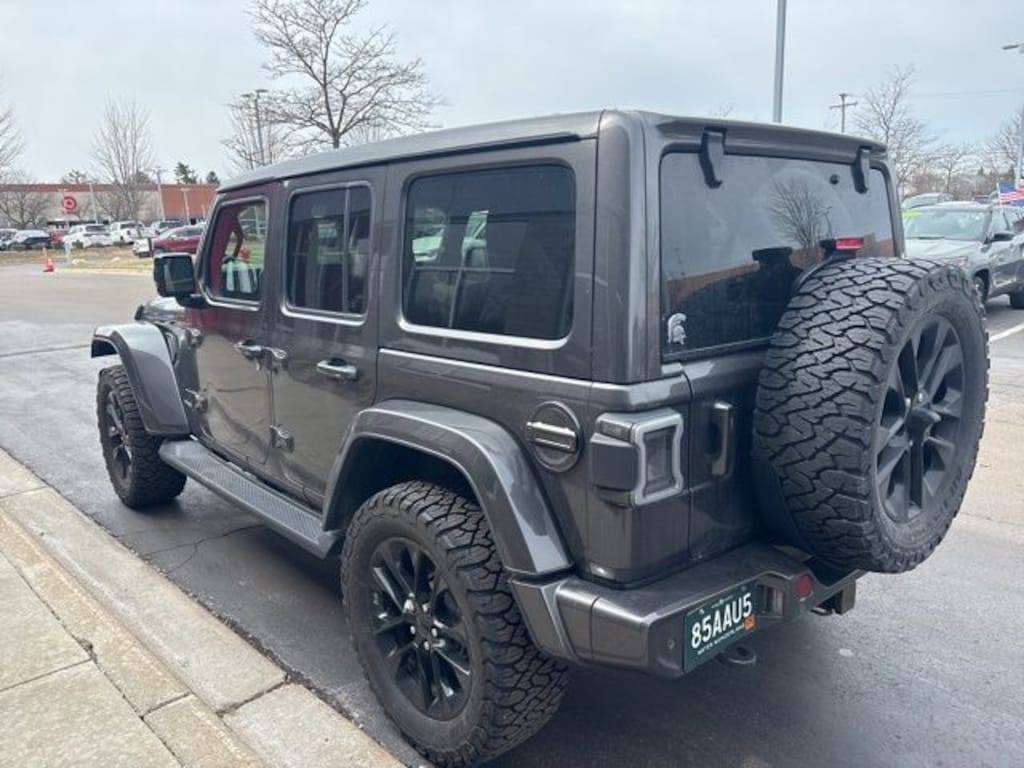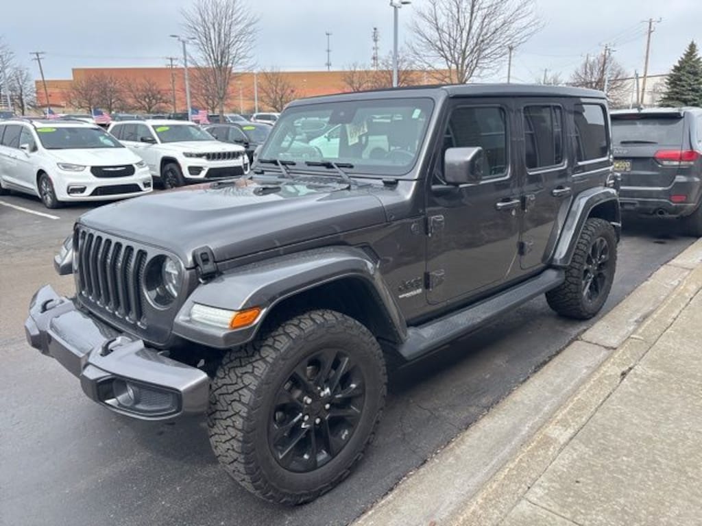 Certified. We are Michigan's #1 Certified Pre-Owned Dealer!, 7-year/100,000-mile warranty!, Accident Free Carfax History Report, Wrangler Unlimited Sahara High Altitude Sky 1-Touch Power Top, 4D Sport Utility, 3.6L V6 24V VVT, 8-Speed Automatic, 4WD, Granite Crystal Metallic Clearcoat, Black Leather, Wiring Harness 7 & 4 Pin, 240 Amp Alternator, 3.73 Rear Axle Ratio, 700 Amp Maintenance Free Battery, 8.4" Radio & Premium Audio Group, Advanced Brake Assist, Advanced Safety Group, Anti-Lock 4-Wheel FNC Disc Brakes, Anti-Spin Differential Rear Axle, Apple CarPlay, Auto High Beam Headlamp Control, Auxiliary Switches, Blind Spot & Cross Path Detection, Body Color Door Handles, Body Color Exterior Mirrors, Body Color Front Bumper, Body Color Fuel Filler Door, Body Color Grille w/Gloss Black Rings, Body Color Rear Bumper w/Step Pads, Caramel Interior Accents, Class II Receiver Hitch, Cold Weather Group, Cruise control, Dana M210 Wide HD Tube Front Axle, Dana M220 Wide Rear Axle, For More Info, Call 800-643-2112, Front fog lights, Full Body Color Fender Flares, Full Speed Forward Collision Warning Plus, Fully automatic headlights, Google Android Auto, GPS Antenna Input, Heated Front Seats, Heated Steering Wheel, High Altitude Package, Integrated Voice Command w/Bluetooth, Leather Trimmed Bucket Seats (KL), Leather Wrapped Park Brake Handle, Leather Wrapped Shift Knob, LED Lighting Group, Off-Road Info Pages, Panic alarm, ParkSense Rear Park Assist System, Power Top Quarter Window Storage Bag, Premium Dark Exterior Accents, Quick Order Package 25N High Altitude, Remote Proximity Keyless Entry, Removable Rear Quarter Windows, Safety Group, Security system, Sky 1-Touch Power Top, Sport Suspension, Summit Badging, Trailer Tow & HD Electrical Group, USB Host Flip, Wheels: 20" x 8" Fully Painted Aluminum, Wrapped I/P Bezel w/Caramel Stitch. Clean CARFAX.