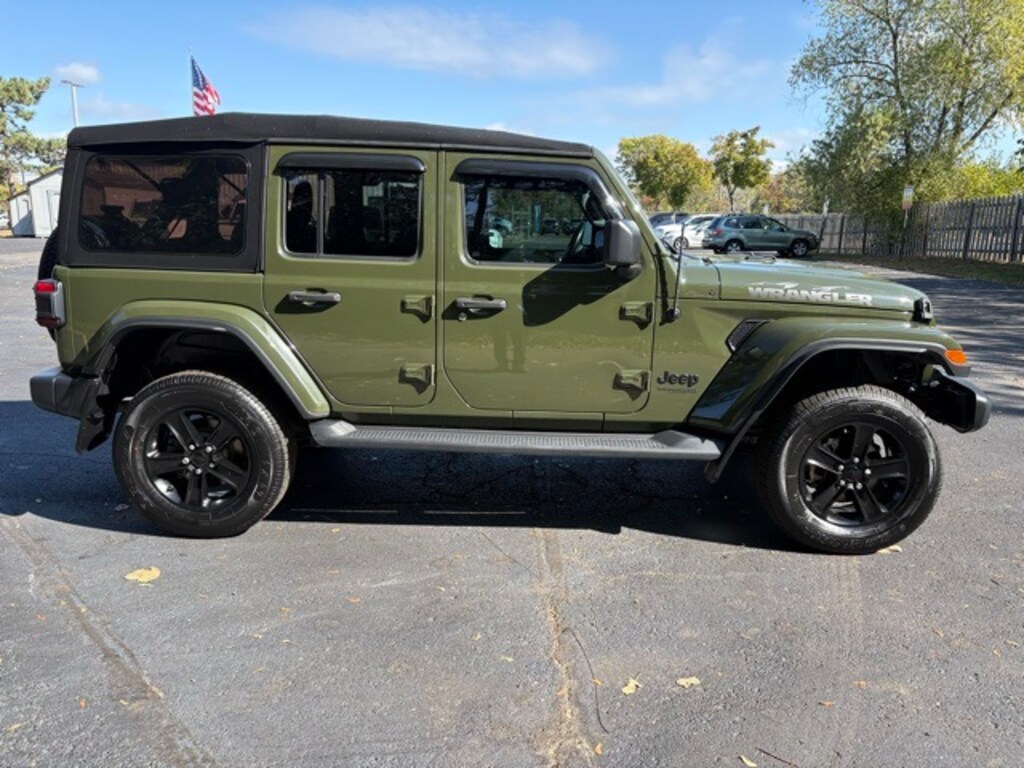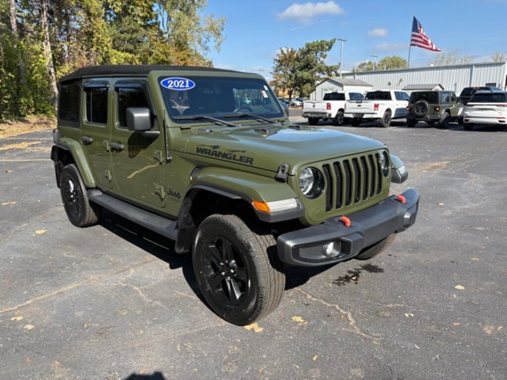 Wrangler Unlimited Sahara Altitude, 4D Sport Utility, 3.6L V6 24V VVT, 8-Speed Automatic, 4WD, Sarge Green Clearcoat, Black Leather, Wiring Harness 7 & 4 Pin, 1-Year SiriusXM Guardian Trial, 240 Amp Alternator, 3.45 Rear Axle Ratio, 4-Wheel Disc Brakes, 4G LTE Wi-Fi Hot Spot, 5-Year SiriusXM Traffic Service, 5-Year SiriusXM Travel Link Service, 700 Amp Maintenance Free Battery, 8.4" Radio & Premium Audio Group, 8.4" Touchscreen Display, ABS brakes, Air Conditioning, Alloy wheels, Alpine Premium Audio System, Altitude Package, AM/FM radio: SiriusXM, Anti-Spin Differential Rear Axle, Apple CarPlay, Auto-Dimming Rear-View Mirror, Automatic temperature control, Aux Battery, Auxiliary Switches, Black Interior Accents, Black Trail Rated Badge, Blind Spot & Cross Path Detection, Body Color 3-Piece Hard Top, Body Color Grille w/Gloss Black Rings, Brake assist, Class II Receiver Hitch, Cloth Low-Back Bucket Seats, Cruise control, Daytime Running Lamps LED Accents, Dual Top Group, Electronic Stability Control, Emergency/Assistance Call, For Details, Visit DriveUconnect.com, Freedom Panel Storage Bag, Front Bucket Seats, Front Center Armrest w/Storage, Front LED Fog Lamps, GPS Antenna Input, GPS Navigation, HD Radio, Heated door mirrors, Heavy Duty Suspension w/Gas Shocks, Jeep Trail Rated Kit, Leather Trimmed Bucket Seats, Leather Wrapped Park Brake Handle, Leather Wrapped Shift Knob, LED Lighting Group, LED Premium Reflector Headlamps, LED Taillamps, Matte Black Jeep Badge, Mold In Color Bumper w/Gloss Black, MOPAR Hardtop Headliner, Non-Lock Fuel Cap w/o Discriminator, ParkSense Rear Park Assist System, ParkView Rear Back-Up Camera, Passenger door bin, Power door mirrors, Power windows, Premium Black Sunrider Soft Top w/Dual Top Group, Quick Order Package 25L Altitude (DISC), Radio data system, Radio: Uconnect 4 w/7" Display, Radio: Uconnect 4C Nav w/8.4" Display, Rear reading lights, Rear Window Defroster, Rear Window Wiper/Washer, Remote keyless entry, Safety Group, Security system, SiriusXM Traffic Plus, SiriusXM Travel Link, Soft Top Window Storage Bag, Split folding rear seat, Steering wheel mounted audio controls, Tachometer, Telescoping steering wheel, Tilt steering wheel, Traction control, Trailer Tow & HD Electrical Group, Trip computer, Variably intermittent wipers, Voltmeter, Wheels: 18" x 7.5" Gloss Black Aluminum, Wizard Black Instrument Panel Bezels. Clean CARFAX.