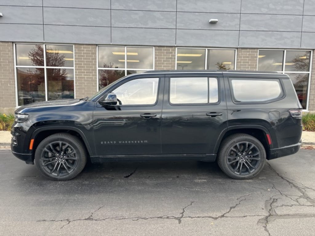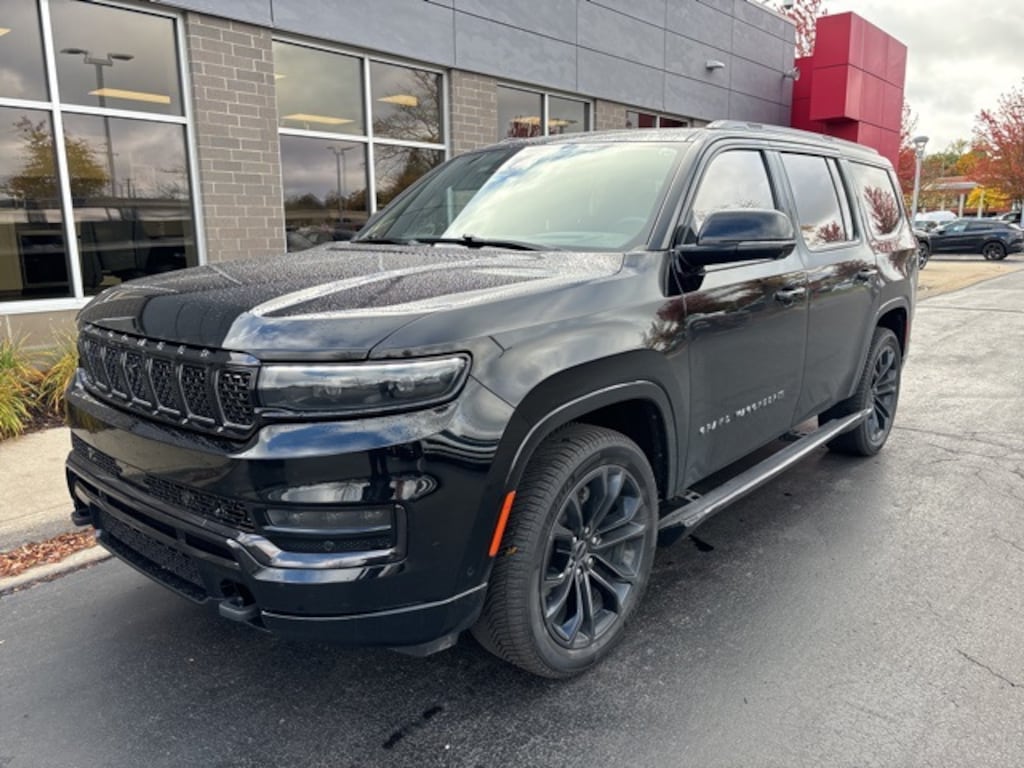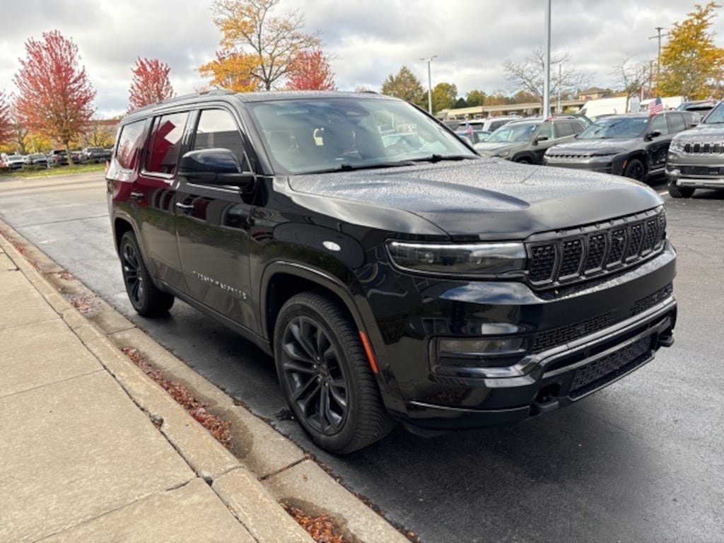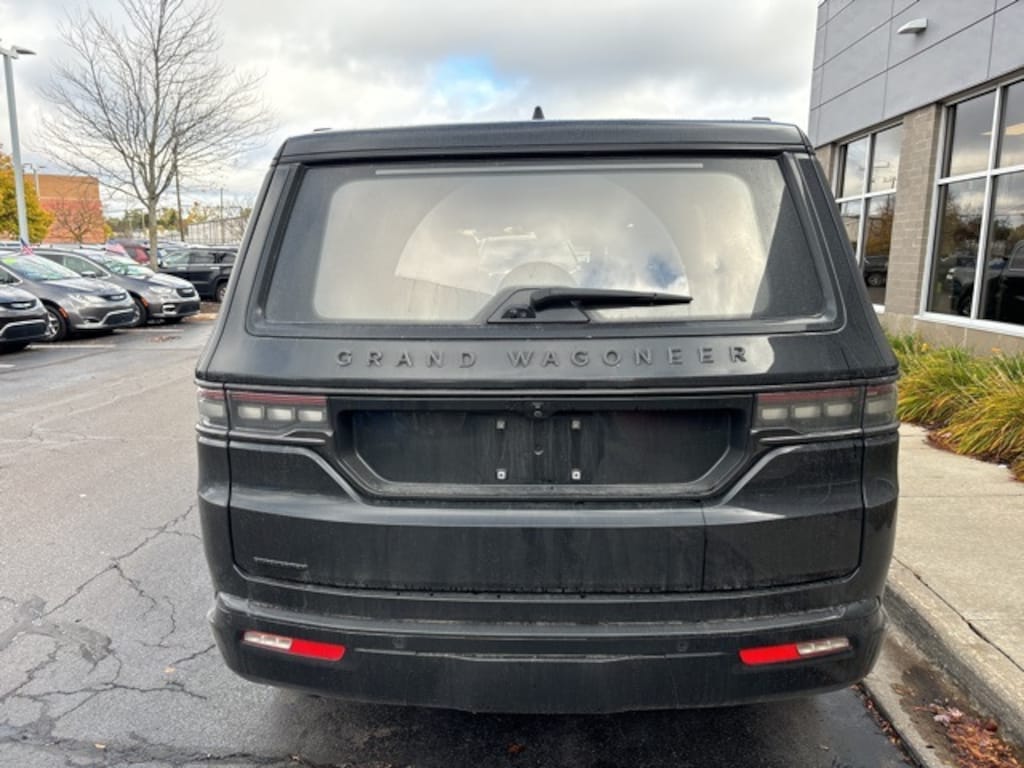 Accident Free Carfax History Report, Carfax One Owner!!, JD Power retail is $64,550!, Grand Wagoneer Series III Obsidian, 4D Sport Utility, 3.0L I6, 8-Speed Automatic, 4WD, Diamond Black Crystal Pearlcoat, Global Black Leather, Adjustable pedals, Air Conditioning, Alloy wheels, Amazon Fire TV Built-In, Auto High-beam Headlights, Auto-dimming door mirrors, Auto-dimming Rear-View mirror, Auto-leveling suspension, Black Interior Accents, Brake assist, Bumpers: body-color, Compass, Cruise control, Delay-off headlights, Driver door bin, Driver vanity mirror, Driver's Seat Mounted Armrest, Electronic Stability Control, Four wheel independent suspension, Front Bucket Seats, Front fog lights, Front reading lights, Fully automatic headlights, Garage door transmitter, Genuine wood console insert, Genuine wood dashboard insert, Genuine wood door panel insert, Gloss Black Upper & Lower DLO Molding, HD Trailer Tow Package, Heads-Up Display, Heated door mirrors, Heated front seats, Heated rear seats, Heated steering wheel, Heavy-Duty Engine Cooling, Illuminated entry, Leather steering wheel, Memory seat, Navigation System, Night vision lights, Normal Duty Suspension, Obsidian Appearance Package, Outside temperature display, Overhead console, Panic alarm, Passenger seat mounted armrest, Passenger vanity mirror, Pedal memory, Piano Black Exterior Accents, Power door mirrors, Power driver seat, Power Liftgate, Power moonroof, Power passenger seat, Power windows, Premium Leather Trimmed Bucket Seats, Quick Order Package 28T Obsidian, Radio: Uconnect 5 Nav w/12.0" Display, Rain sensing wipers, Rear reading lights, Rear seat center armrest, Rear Seat Video Group 1, Rear window wiper, Reclining 3rd row seat, Remote keyless entry, Removable Rear Tow Hook, Roof rack, Seatback Video Screens, Security system, Speed-sensing steering, Speed-Sensitive Wipers, Split folding rear seat, Steering wheel memory, Steering wheel mounted audio controls, Tachometer, Telescoping steering wheel, Traction control, Trailer Brake Control, Trailer Hitch Zoom, Turn signal indicator mirrors, Two Tone Paint Group, Variably intermittent wipers, Ventilated front seats, Ventilated rear seats, Video USB Port, Wheels: 22" x 9.0" Tinted Polished w/Black Insert. CARFAX One-Owner.