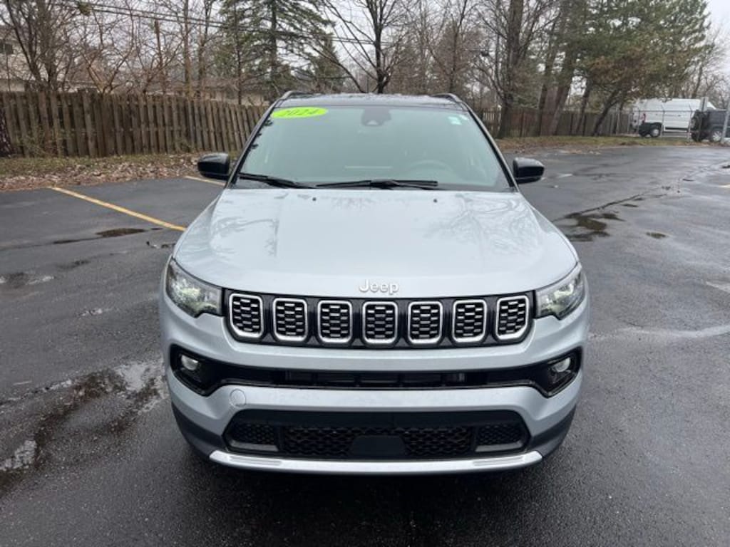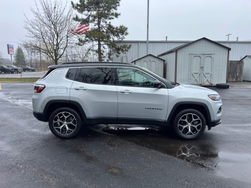 Compass Limited, 4D Sport Utility, 2.0L I4 DOHC, 8-Speed Automatic, 4WD, Silver Zynith Metallic Clearcoat, Sepia/Black w/Leatherette Seats or Premium Leather Trimmed Bucket Seats, 10.1" Touchscreen Display, 4G LTE Wi-Fi Hot Spot, 6 Speakers, Air Conditioning, Auto High-beam Headlights, Automatic temperature control, Brake assist, Bumpers: body-color, Compass, Cruise control, Delay-off headlights, Driver door bin, Driver vanity mirror, Electronic Stability Control, Four wheel independent suspension, Front Bucket Seats, Front dual zone A/C, Front fog lights, Front reading lights, Fully automatic headlights, Heated front seats, Heated steering wheel, Leather Shift Knob, Leather steering wheel, Leatherette Seats, Outside temperature display, Overhead console, Panic alarm, ParkView Rear Back-Up Camera, Power door mirrors, Power driver seat, Power windows, Quick Order Package 29G Limited, Radio: Uconnect 5 w/10.1" Display, Rear window defroster, Remote keyless entry, Security system, SiriusXM Radio Service, Split folding rear seat, Spoiler, Steering wheel mounted audio controls, Traction control, Turn signal indicator mirrors. CARFAX One-Owner.