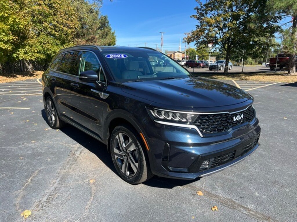 Brand new tires! Accident Free Carfax History Report, Local Trade**, Sorento Hybrid EX, 4D Sport Utility, 1.6L Turbo GDI 4-Cylinder, 6-Speed Automatic, AWD, Gravity Blue, Navy/Gray w/Perforated Genuine Leather Seat Trim, 3rd row seats: split-bench, 6 Speakers, Alloy wheels, AM/FM radio: SiriusXM, Apple CarPlay & Android Auto, Auto High-beam Headlights, Brake assist, Bumpers: body-color, Carpet Floor Mats, Cruise control, Delay-off headlights, Driver door bin, Driver vanity mirror, Dual front impact airbags, Dual front side impact airbags, Electronic Stability Control, Emergency communication system: 911 Connect, Exterior Parking Camera Rear, Front anti-roll bar, Front Bucket Seats, Front Center Armrest, Front fog lights, Front reading lights, Fully automatic headlights, Heated door mirrors, Heated Front Bucket Seats, Heated front seats, Illuminated entry, Knee airbag, Leather steering wheel, Mudguards, Navigation System, Occupant sensing airbag, Outside temperature display, Overhead airbag, Overhead console, Panic alarm, Passenger vanity mirror, Power door mirrors, Power driver seat, Power Liftgate, Power passenger seat, Power windows, Radio data system, Radio: AM/FM/SiriusXM Audio System, Rear anti-roll bar, Rear reading lights, Remote keyless entry, Security system, Smart Key w/ Push Button and Remote Start, Split folding rear seat, Spoiler, Steering wheel mounted audio controls, SynTex Artificial Leather Seat Trim, Tachometer, Telescoping steering wheel, Tilt steering wheel, Trip computer, Turn signal indicator mirrors. Clean CARFAX.