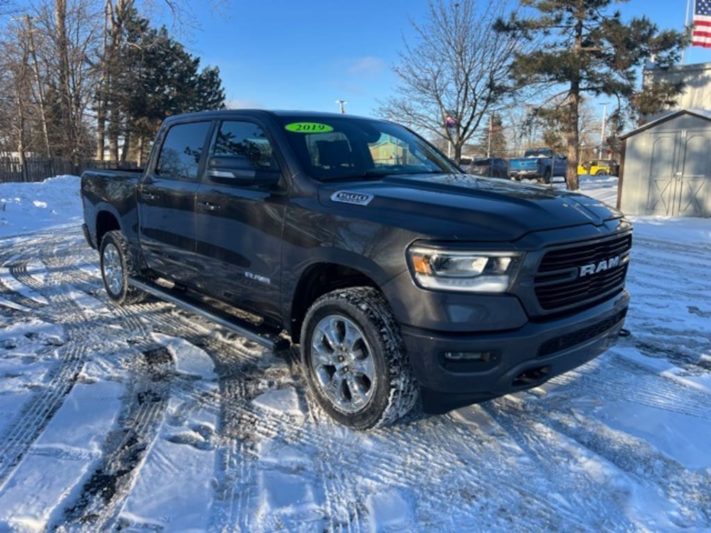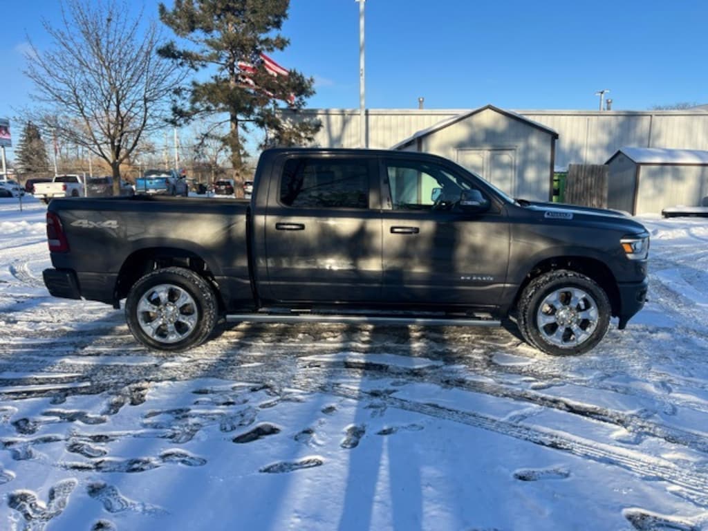 1500 Big Horn/Lone Star, 4D Crew Cab, HEMI 5.7L V8 Multi Displacement VVT, 8-Speed Automatic, 4WD, Granite Crystal Metallic Clearcoat, Diesel Gray/Black w/Cloth Bench Seat or Deluxe Cloth Bucket Seats, 115V Auxiliary Rear Power Outlet, 2 USB Full Function/Charge Only Media Hub, 400W Inverter, 48V Belt Starter Generator, 4x4 Decal, 8.4" Touchscreen Display, Air Conditioning, Air Conditioning ATC w/Dual Zone Control, AM/FM radio, Auto-Dimming Exterior Driver Mirror, Auto-Dimming Rear-View Mirror, Auxiliary 115V Power Outlet, Big Horn IP Badge, Big Horn Level 2 Equipment Group, Body Color Door Handles, Body Color Front Bumper, Body Color Rear Bumper w/Step Pads, Brake assist, Bumpers: chrome, Class IV Receiver Hitch, Cluster 7.0" TFT Color Display, Compass, Cruise control, Dampened Tailgate, Delay-off headlights, Driver door bin, E-Locker Rear Axle, Electronic Stability Control, Engine Block Heater, Exterior Mirrors Courtesy Lamps, Exterior Mirrors w/Memory, Exterior Mirrors w/Supplemental Signals, Foam Bottle Insert (Door Trim Panel), Front & Rear Rubber Floor Mats, Front Extra HD Shock Absorbers, Front fog lights, Front LED Fog Lamps, Front reading lights, Fully automatic headlights, Glove Box Lamp, GPS Antenna Input, Grille B/Color Outline 1 Texture 2, Heated door mirrors, Heated Front Seats, Heated Steering Wheel, Hill Descent Control, Illuminated entry, Integrated Center Stack Radio, Leather steering wheel, LED Reflector Headlamps, LED Taillamps, North Edition, Outside temperature display, Overhead console, Panic alarm, ParkSense Front/Rear Park Assist w/Stop, ParkView Rear Back-Up Camera, Power 4-Way Driver Lumbar Adjust, Power 8-Way Driver Seat, Power Adjustable Pedals, Power door mirrors, Power Heated Fold Away Mirrors, Power Heated Fold-Away Mirrors, Power-Folding Mirrors, Premium Lighting Group, Quick Order Package 25Z Big Horn/Lone Star, Radio: Uconnect 4 w/8.4" Display, Rear Dome w/On/Off Switch Lamp, Rear Extra HD Shock Absorbers, Rear Power Sliding Window, Rear step bumper, Rear Wheelhouse Liners, Rear Window Defroster, Remote Start System, Security Alarm, Single Disc Remote CD Player, SiriusXM Satellite Radio, Steering Wheel Mounted Audio Controls, Sun Visors w/Illuminated Vanity Mirrors, Tachometer, Telescoping steering wheel, Tilt steering wheel, Tow Hooks, Trip computer, Universal Garage Door Opener, Voltmeter, Wheel to Wheel Side Steps. Clean CARFAX.