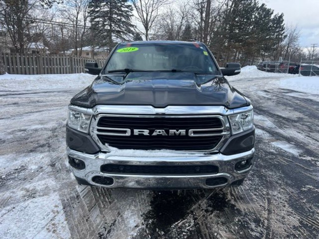 Local Trade**, 4D Crew Cab, HEMI 5.7L V8 Multi Displacement VVT, 8-Speed Automatic, 4WD, Granite Crystal Metallic Clearcoat, Diesel Gray/Black w/Cloth Bench Seat or Deluxe Cloth Bucket Seats, 115V Auxiliary Rear Power Outlet, 2 USB Full Function/Charge Only Media Hub, 3 Rear Seat Head Restraints, 3.21 Rear Axle Ratio, 4 Way Front Headrests, 4-Wheel Disc Brakes, 400W Inverter, 48V Belt Starter Generator, 6 Speakers, 8.4" Touchscreen Display, ABS brakes, Air Conditioning, Air Conditioning ATC w/Dual Zone Control, Alloy wheels, AM/FM radio, Auto-Dimming Rear-View Mirror, Auxiliary 115V Power Outlet, Big Horn IP Badge, Big Horn Level 2 Equipment Group, Brake assist, Bumpers: chrome, Class IV Receiver Hitch, Cloth Bench Seat, Cluster 7.0" TFT Color Display, Compass, Cruise control, Dampened Tailgate, Delay-off headlights, Driver door bin, Dual front impact airbags, Dual front side impact airbags, Electronic Stability Control, Foam Bottle Insert (Door Trim Panel), Front anti-roll bar, Front Center Armrest w/Storage, Front fog lights, Front reading lights, Front Seat Back Map Pockets, Front wheel independent suspension, Fully automatic headlights, Glove Box Lamp, GPS Antenna Input, Heated door mirrors, Heated Front Seats, Heated Steering Wheel, Illuminated entry, Integrated Center Stack Radio, Leather steering wheel, Low tire pressure warning, Occupant sensing airbag, Outside temperature display, Overhead airbag, Overhead console, Panic alarm, ParkSense Front/Rear Park Assist w/Stop, ParkView Rear Back-Up Camera, Passenger door bin, Passenger vanity mirror, Power 4-Way Driver Lumbar Adjust, Power 8-Way Driver Seat, Power Adjustable Pedals, Power door mirrors, Power Heated Fold Away Mirrors, Power windows, Quick Order Package 25Z Big Horn/Lone Star, Radio data system, Radio: Uconnect 4 w/8.4" Display, Rear 60/40 Folding Seat, Rear anti-roll bar, Rear Dome w/On/Off Switch Lamp, Rear Power Sliding Window, Rear seat center armrest, Rear step bumper, Rear Wheelhouse Liners, Rear Window Defroster, Remote keyless entry, Remote Start System, Security Alarm, Single Disc Remote CD Player, SiriusXM Satellite Radio, Split folding rear seat, Steering Wheel Mounted Audio Controls, Sun Visors w/Illuminated Vanity Mirrors, Tachometer, Telescoping steering wheel, Tilt steering wheel, Traction control, Trip computer, Universal Garage Door Opener, Variably intermittent wipers, Voltmeter, Wheels: 18" x 8", Wheels: 20" x 9" Aluminum Chrome Clad.
