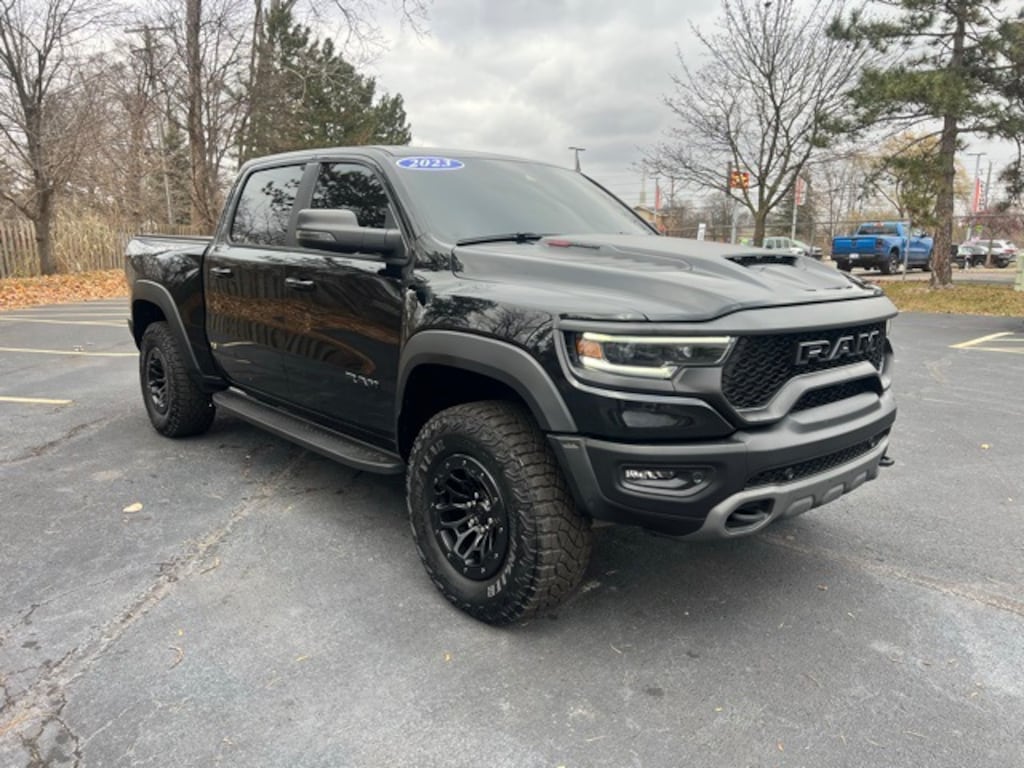 We are Michigans #1 Certified Pre-Owned Dealer, Leather*, Local Trade**, USB Charging Ports, Steering Wheel Controls, Backup Camera, Bluetooth, Leather Seats, Navigation System / GPS, Premium Sound Package, Remote Start, Sunroof / Moonroof, Android Auto, Apple CarPlay, Blind Spot Monitors, Keyless Access w/ Push Button Start, Smartphone App Integration, Voice Recognition, JD Power retail is $92,200!, 1500 TRX, 4D Crew Cab, 6.2L Supercharged HEMI V8 SRT, 8-Speed Automatic, 4WD, Diamond Black Crystal Pearlcoat, Black w/Leather Trim 40/20/40 Bench Seat or Leather Trimmed Bucket Seats, 10 Speakers, 2-Door Passive Entry, Front Door Locks, Accent Color Door Handles, Air Conditioning, AM/FM radio: SiriusXM with 360L, Automatic temperature control, Bed Utility Group, Blind Spot & Cross Path Detection, Digital Rearview Mirror, Driver Seat Memory, Driver/Passenger Wrapped Assist Handles, Exterior Mirrors w/Memory, Front Door Accent Lighting, Full Length Premium Upgraded Floor Console, harman/kardon 19 Speaker Premium Sound, harman/kardon 19 Speaker Premium Sound (DISC), Heads-Up Display, Heated Second Row Seats, Heated Steering Wheel, IP LED Ambient Light Pipe, Leather Trimmed Bucket Seats, Leather/Carbon Flat-Bottom Steering Wheel, Leather/Suede Flat-Bottom Steering Wheel, LED CHMSL Lamp, Luxury Front Door Trim Panel, MOPAR 4 Adjustable Cargo Tie-Down Hooks, MOPAR Bright Pedal Kit, MOPAR Deployable Bed Step, MOPAR Spray In Bedliner, Navigation System, ParkSense Front/Rear Park Assist w/Stop, Pick-Up Box Lighting, Power 8-Way Driver & Passenger Seats, Power Adjustable Pedals w/Memory, Premium Wrapped IP Bezel, Quick Order Package 29Y, Radio data system, Radio: Uconnect 5 Nav w/12.0" Display, Radio/Driver Seat/Mirrors/Pedals Memory, Rain Sensitive Windshield Wipers, Real Carbon Fiber Interior Accents, Rear 60/40 Folding Split Recline Seat, Rear Door Accent Lighting, Rear Underseat Compartment Storage, Rear Window Defroster, Remote Tailgate Release, Sun Visors w/Illuminated Vanity Mirrors, Surround View Camera System, Trailer Brake Control, TRX Carbon Fiber Package, TRX Level 2 Equipment Group, Universal Garage Door Opener, Ventilated Front Seats, Ventilated Rear Seats, Wireless Charging Pad. CARFAX One-Owner.