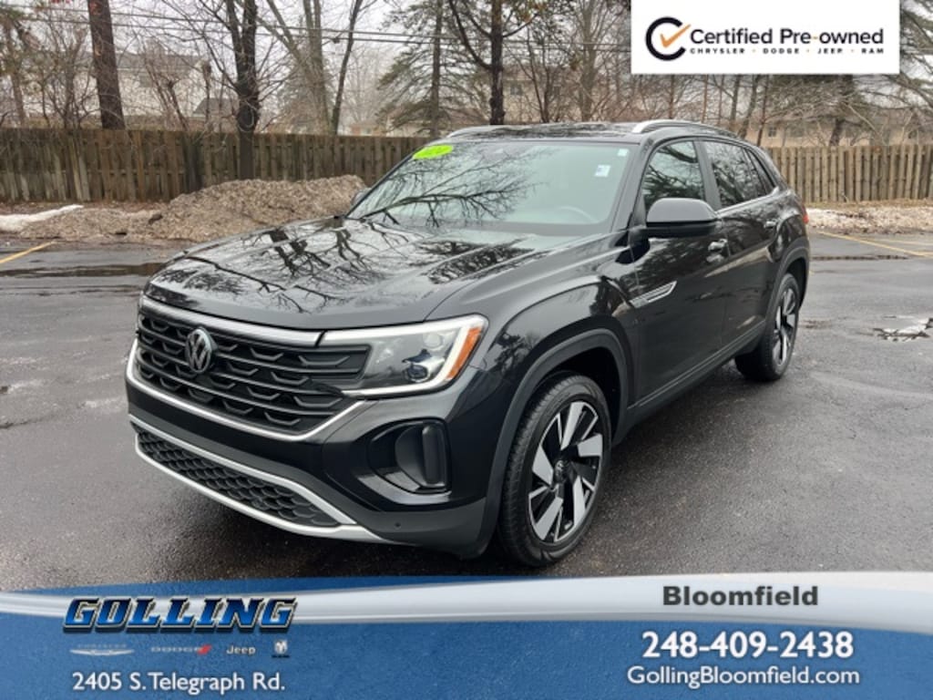 Certified. Atlas Cross Sport 2.0T SE w/Technology (A8), 4D Sport Utility, 2.0L TSI, 8-Speed Automatic with Tiptronic, FWD, 4-Wheel Independent Suspension, 6 Speakers, Air Conditioning, Alloy wheels, AM/FM radio: SiriusXM with 360L, Auto-dimming Rear-View mirror, Automatic temperature control, Brake assist, Bumpers: body-color, Compass, Cruise control, Delay-off headlights, Driver door bin, Driver vanity mirror, Electronic Stability Control, Exterior Parking Camera Rear, Four wheel independent suspension, Front dual zone A/C, Front fog lights, Front reading lights, Fully automatic headlights, Heated & Actively Ventilated Front Seats, Heated door mirrors, Heated steering wheel, Illuminated Front & Rear Volkswagen Logos, Outside temperature display, Overhead console, Panic alarm, Passenger vanity mirror, Power door mirrors, Power driver seat, Power Liftgate, Power steering, Power windows, Radio data system, Radio: MIB3 Composition Media AM/FM/HD, Rain sensing wipers, Rear reading lights, Rear seat center armrest, Rear window defroster, Rear window wiper, Remote keyless entry, Security system, Speed-sensing steering, Spoiler, Steering wheel mounted audio controls, Tachometer, Telescoping steering wheel, Tilt steering wheel, Traction control, Trip computer, Turn signal indicator mirrors, Variably intermittent wipers, Wheels: 20" 5-Spoke 2-Tone Machined Alloy. CARFAX One-Owner.